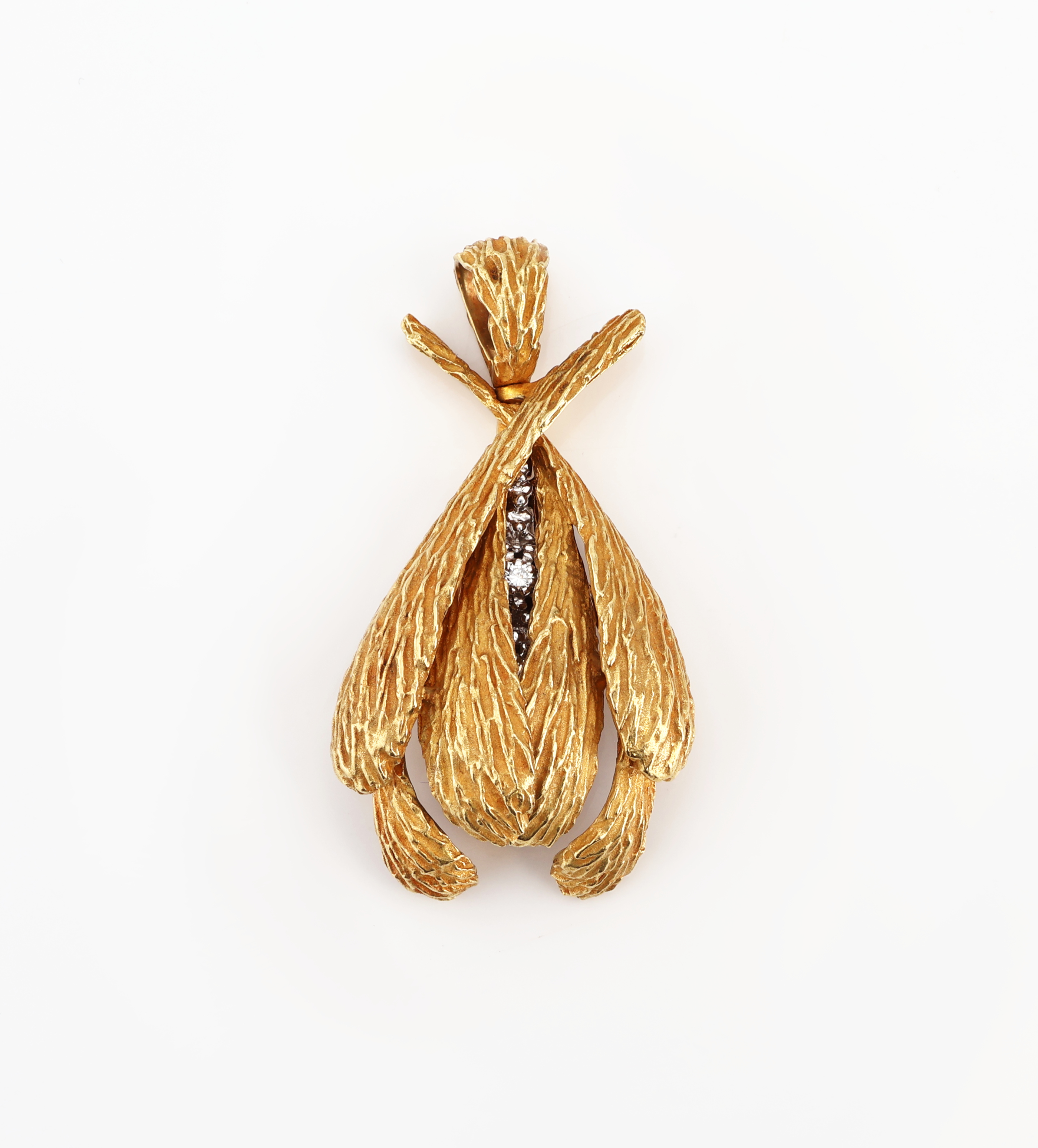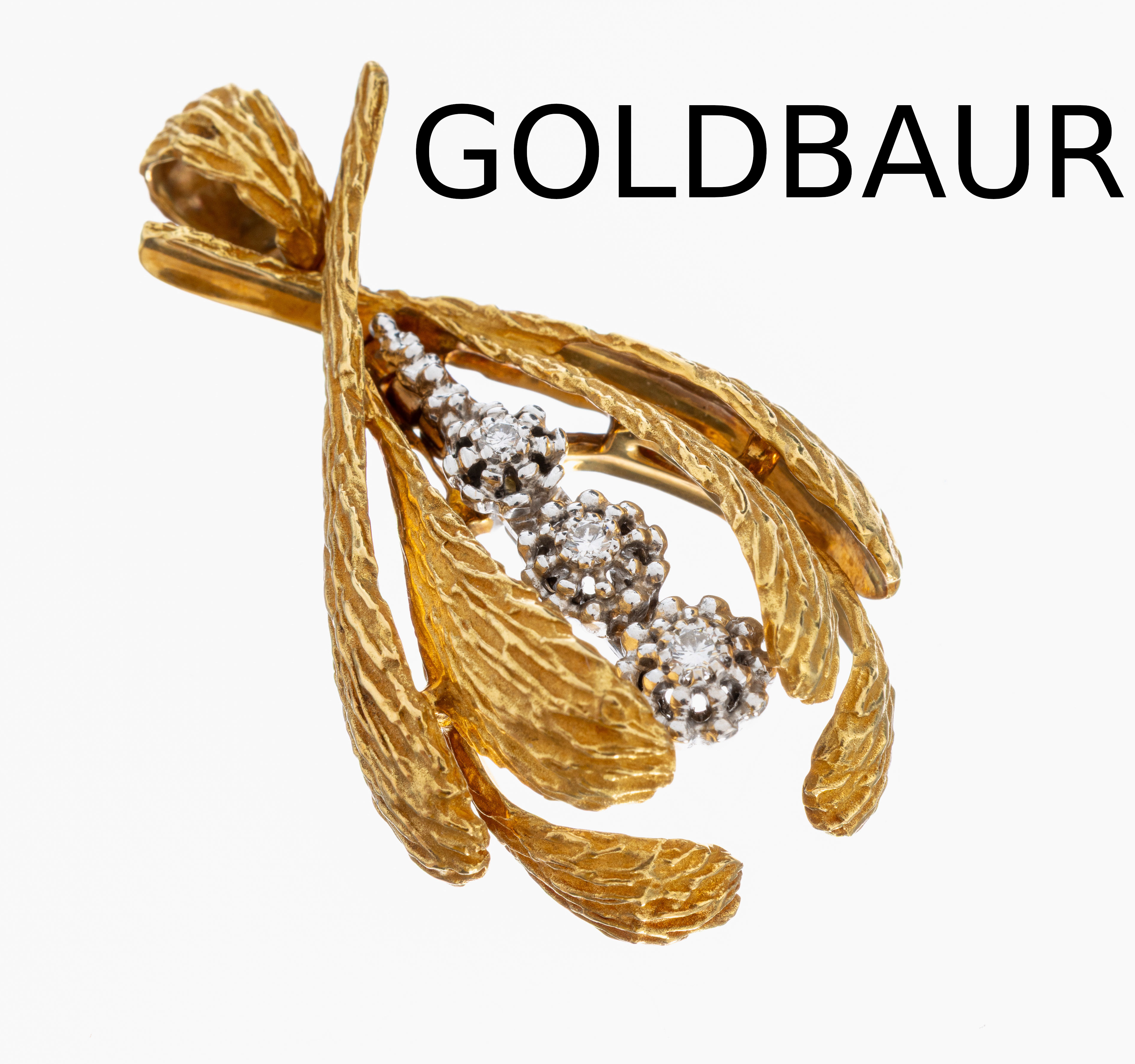 18 kt Gold GOLDBAUR Brillant-Clipanhänger, GG 750/000, florale Darstellung, Blätter