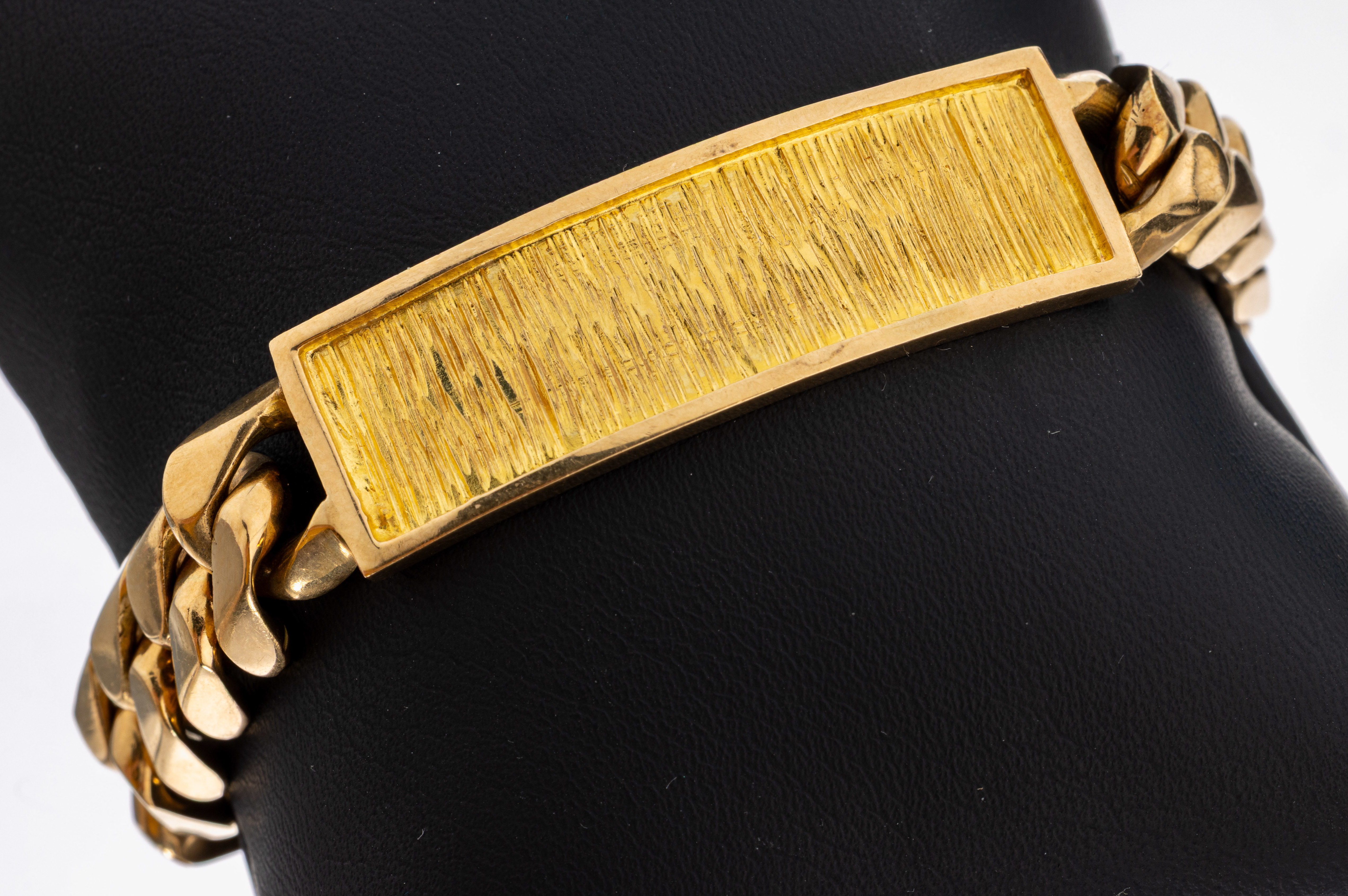18 kt Gold Identitätsarmband, GG 750/000, Gravurplatte frei, strukt., L. ca. 22