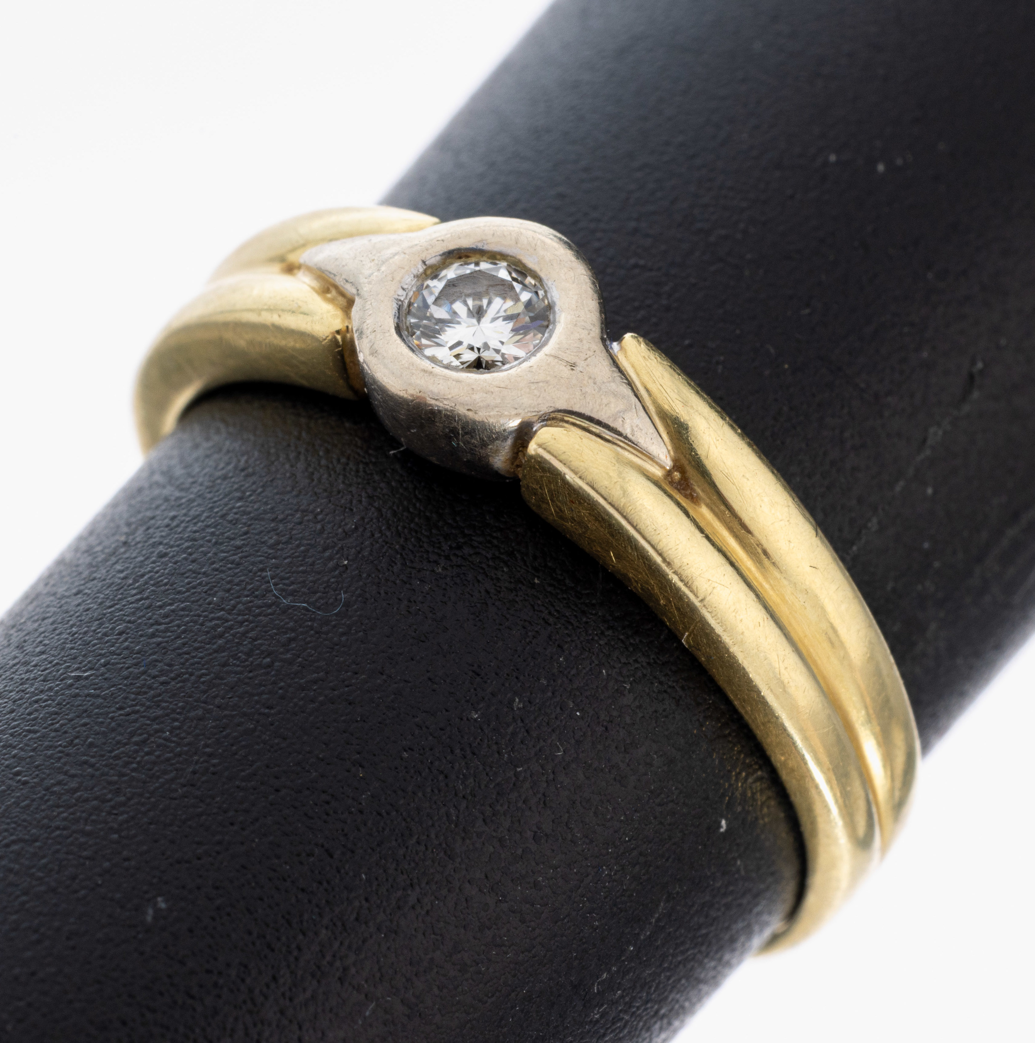 14 kt Gold Brillant-Ring, GG/WG 585/000, in WG gefasster Brillant ca. 0.12 ct Weiß/si,