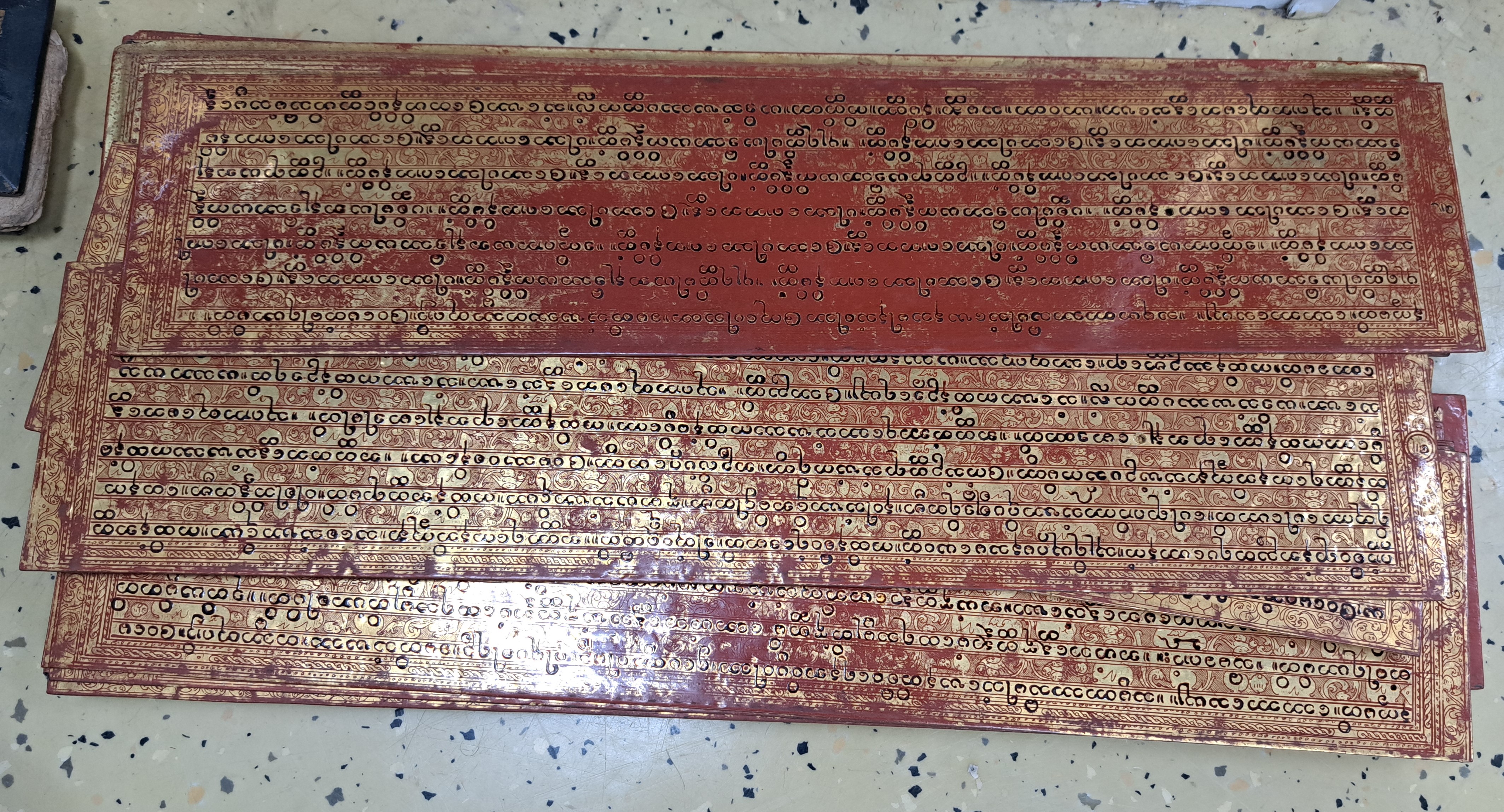 Drei Kammavaca, Thailand, 19./20. Jh., heilige burmesische Texte in Pali, 17 Lackblätter,