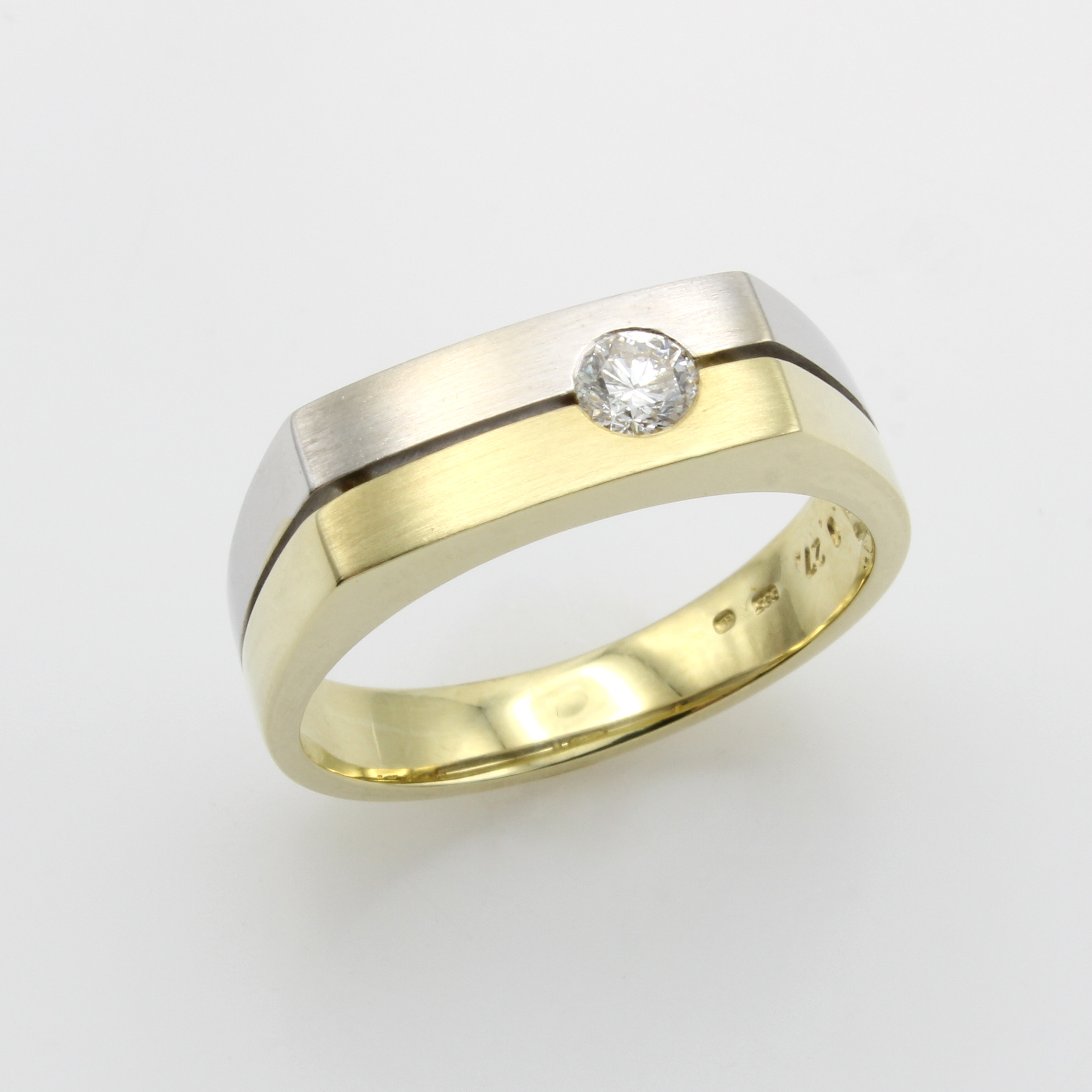Herrenring mit Brillant, WG/GG 585/000, 2-rhg., Brill. ca. 0.27 ct feines Weiß/vs, RW ca. 62.5 Schätzpreis: 3480, - EUR