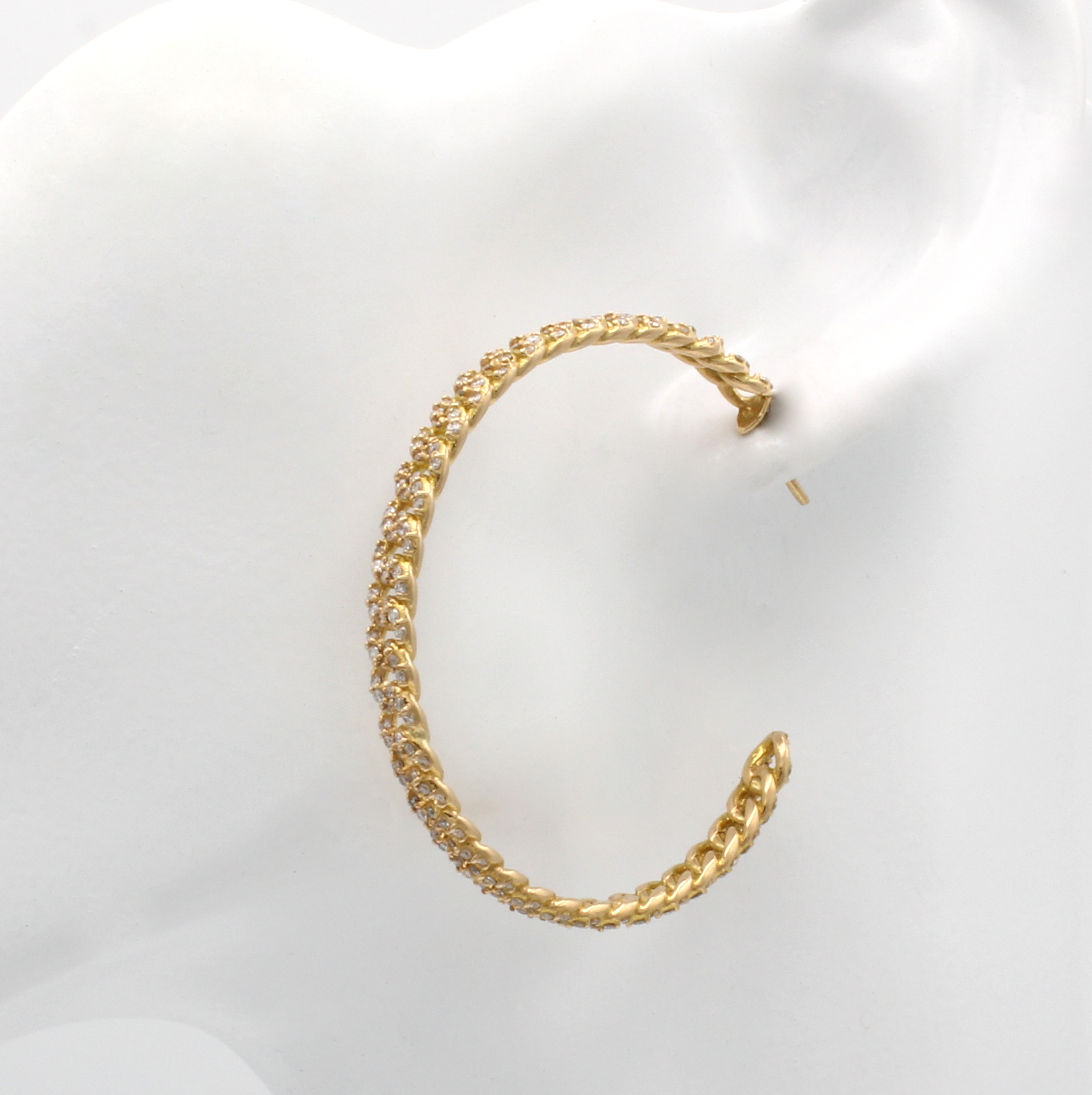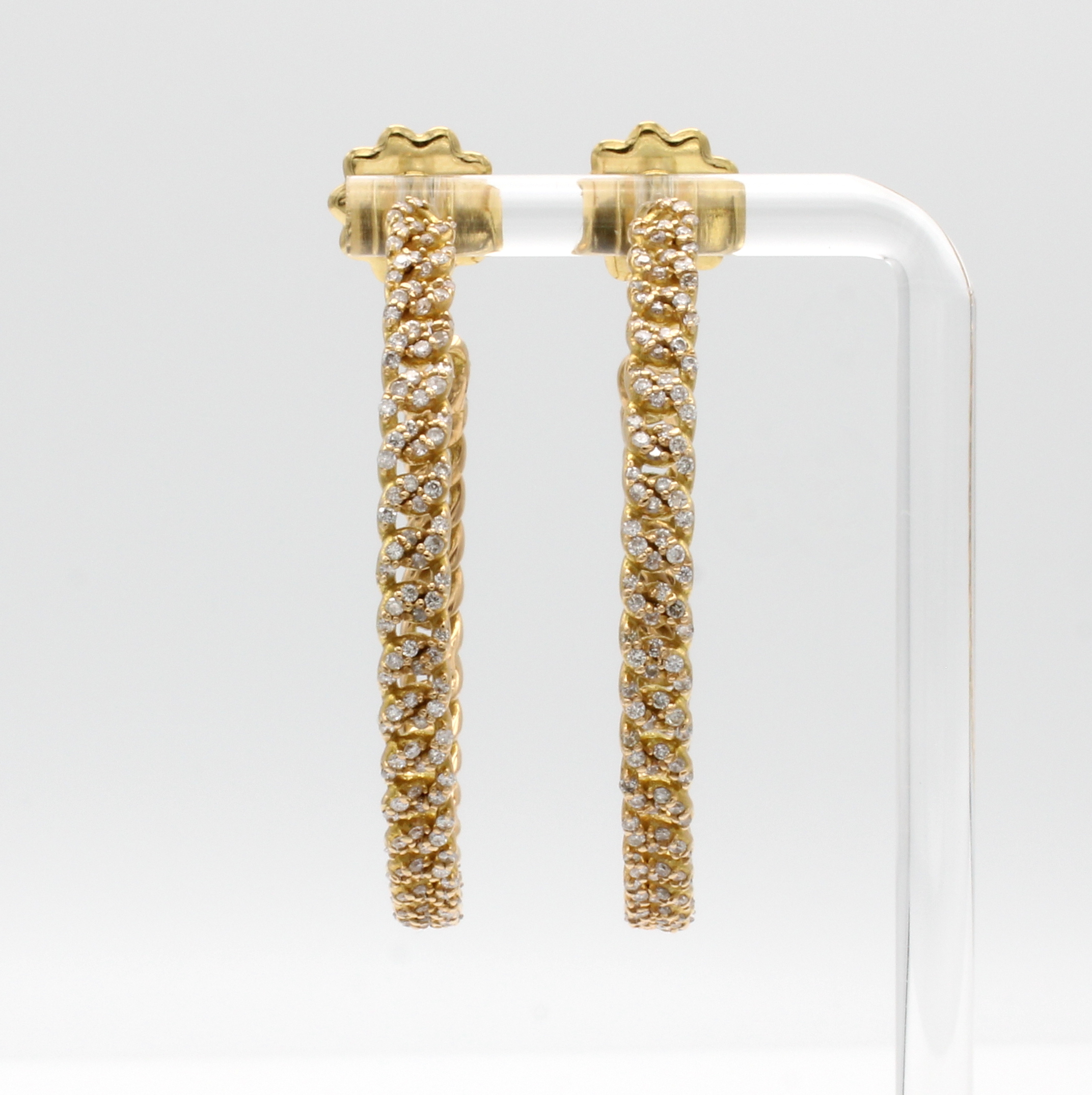 Paar Steckcreolen mit Brillanten, RG 750/000, Gliedermuster, Brill. 2.75 ct Weiß-l.get. Weiß/p, Durchmesser ca. 4,5cm. Schätzpreis: 9800, - EUR