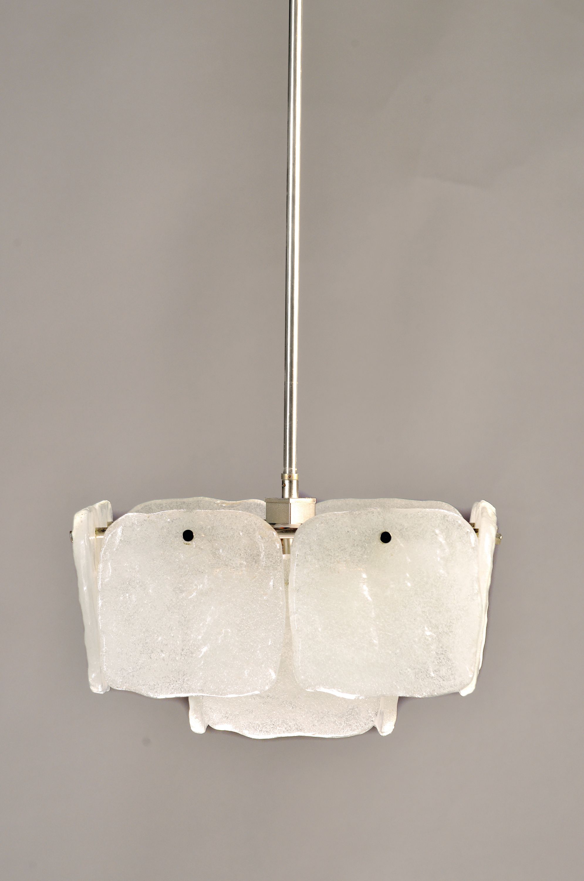 mit opaken 12 schweren sog. Eisglaseinsätzen, vernickeltes Stahlgestänge, 8 Brennstellen,