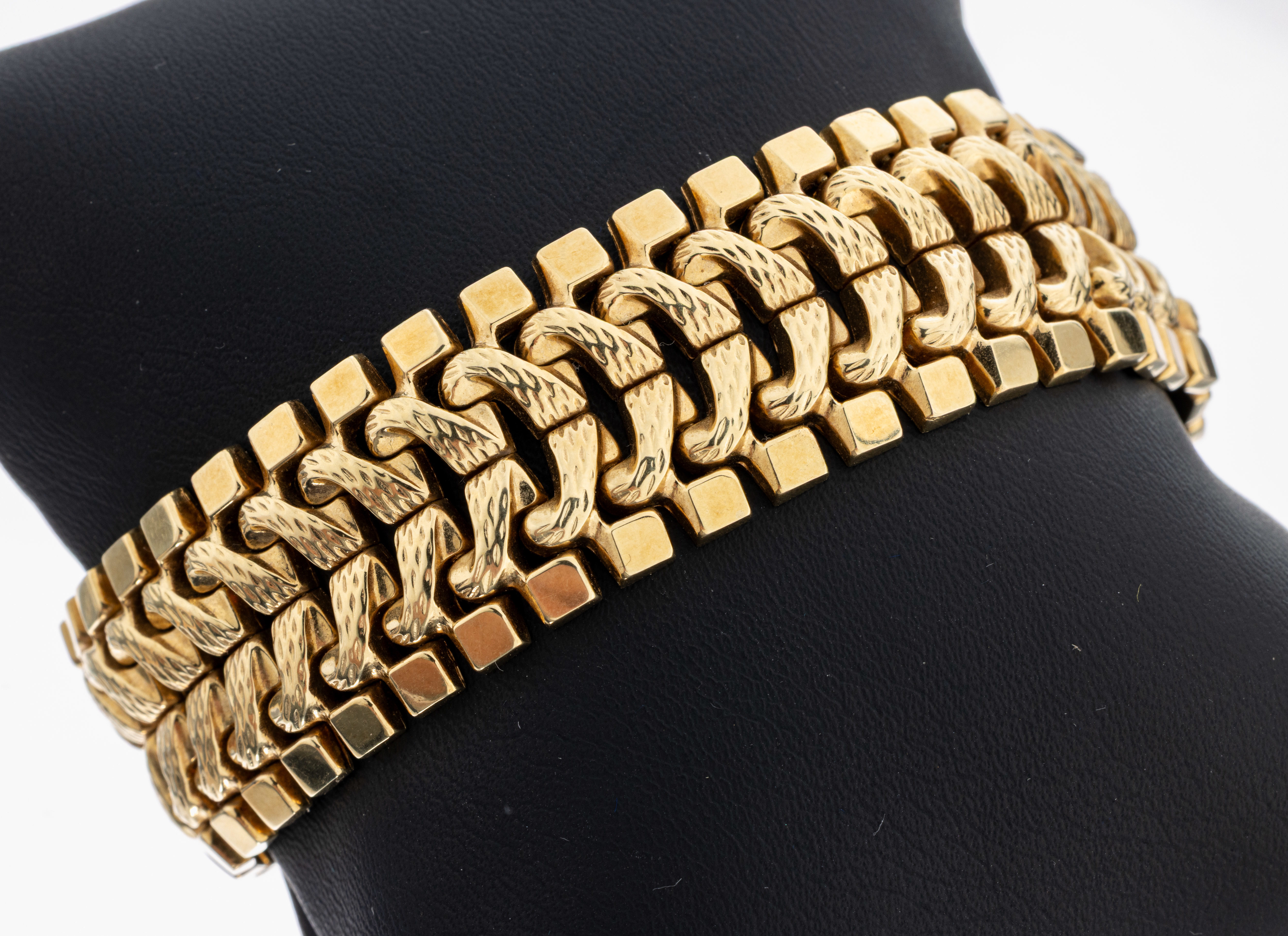 14 kt Gold Armband, GG 585/000, L. ca. 19 cm, Kastenschloss mit 2 Sicherheitsachten,