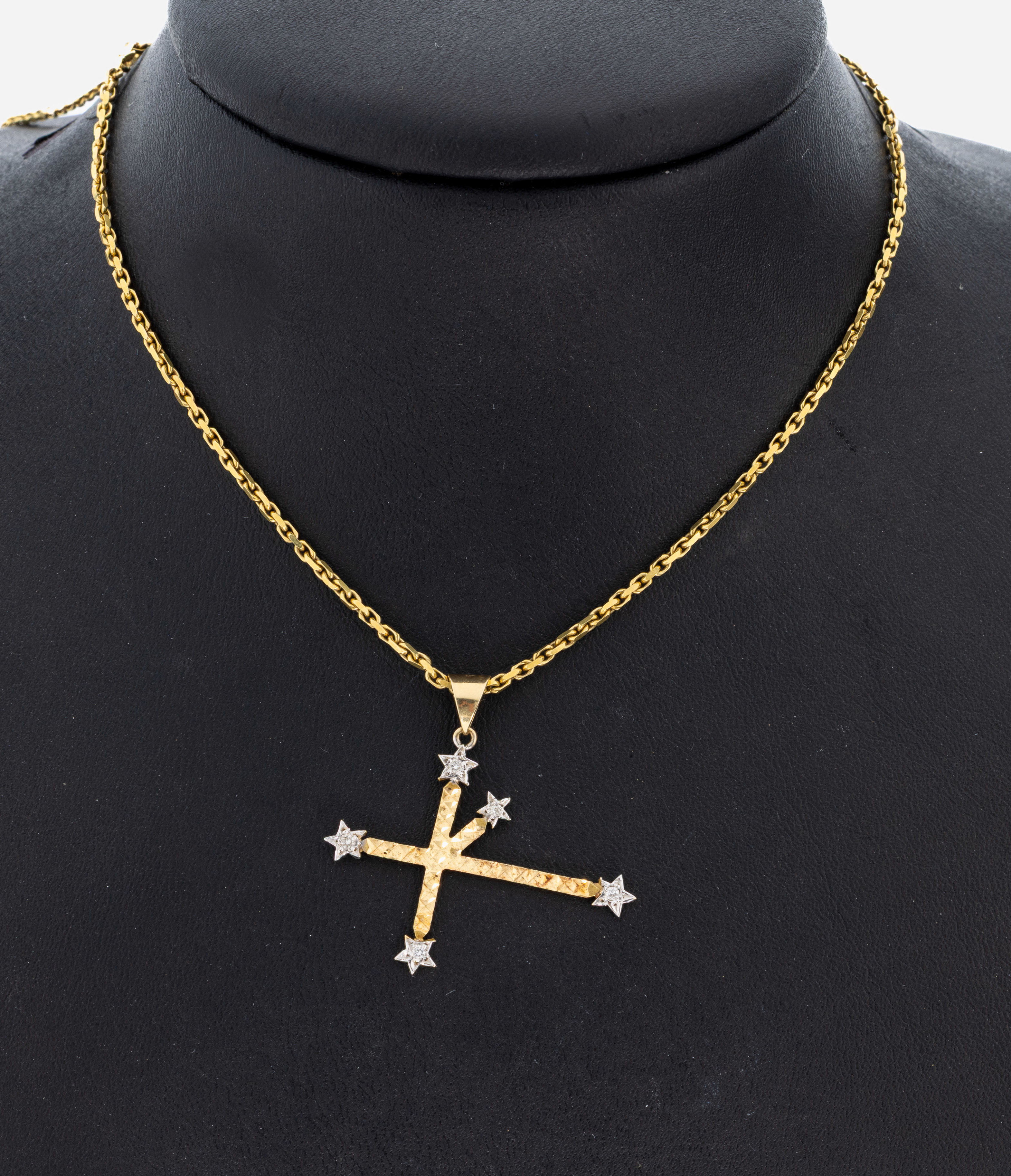 14 kt Gold Diamant-Kreuzanhänger, GG/WG 585/000, 5 8/8-Diamanten zus. ca. 0.05 ct