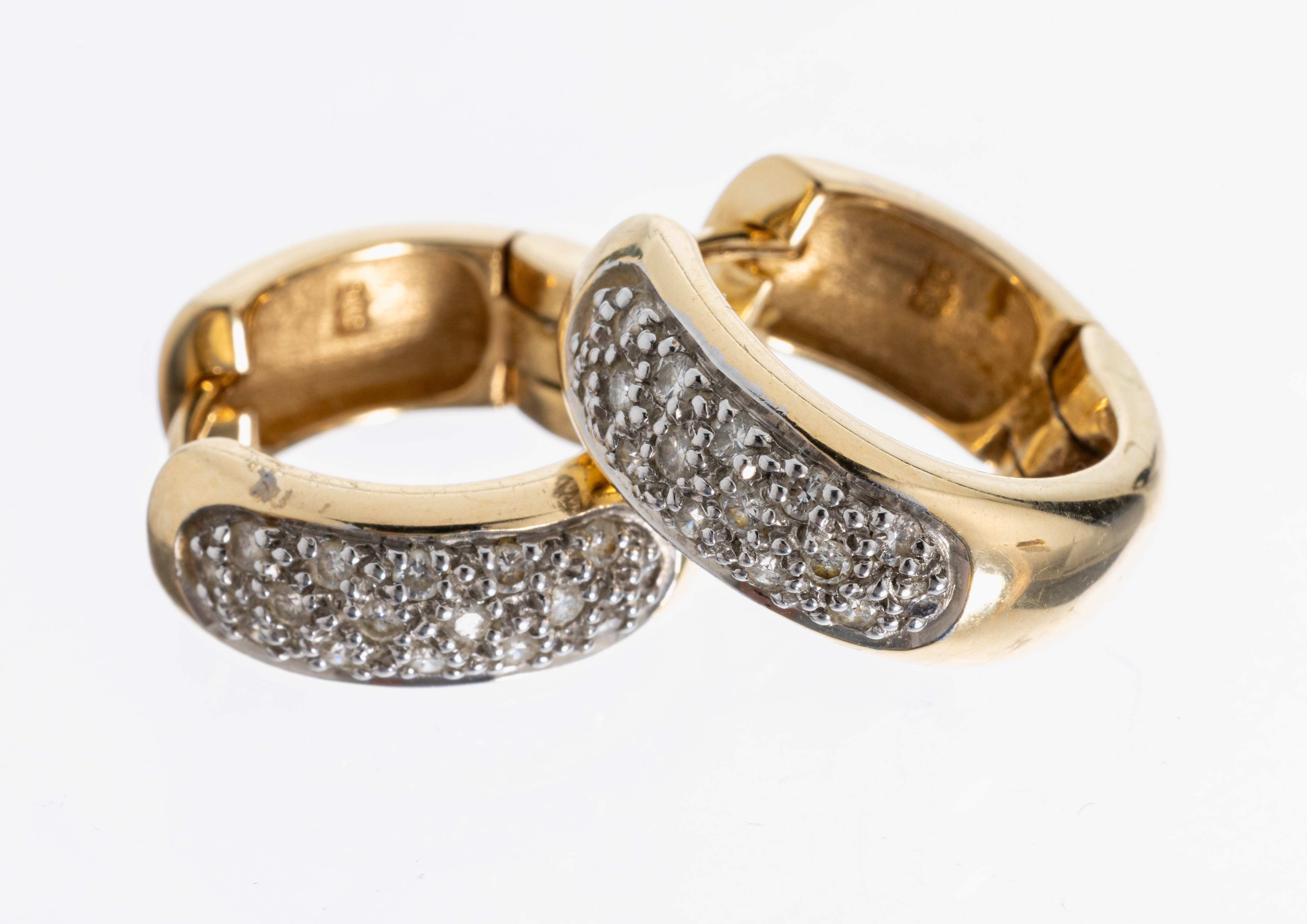 Paar 14 kt Gold Brillant-Ohrcreolen, GG/WG 585/000, 30 Brillanten zus. ca. 0.30 ct