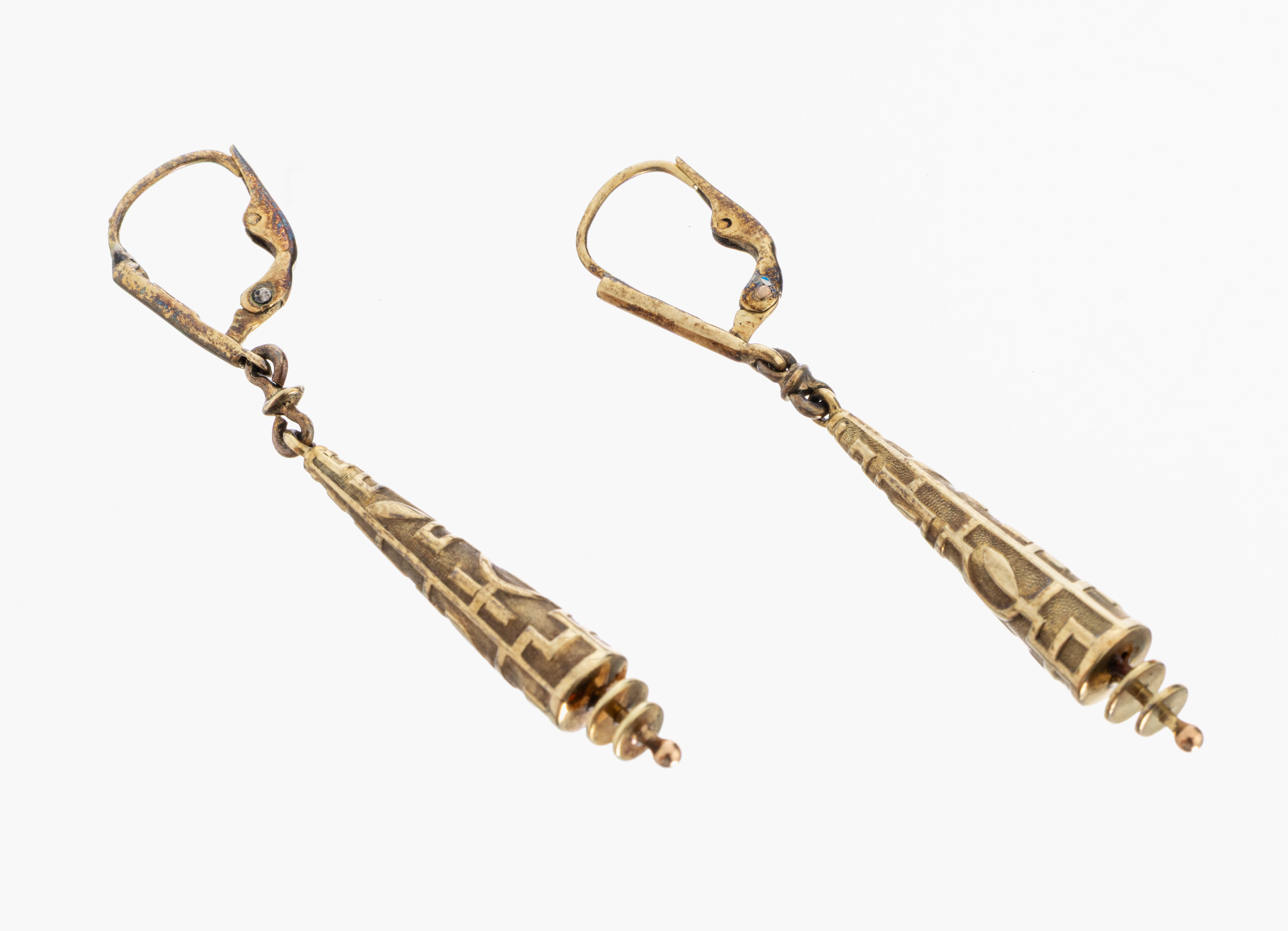 Paar 14 kt Gold Ohrgehänge, GG 585/000, kegelförmig, abstrakte Musterung, L. ca.