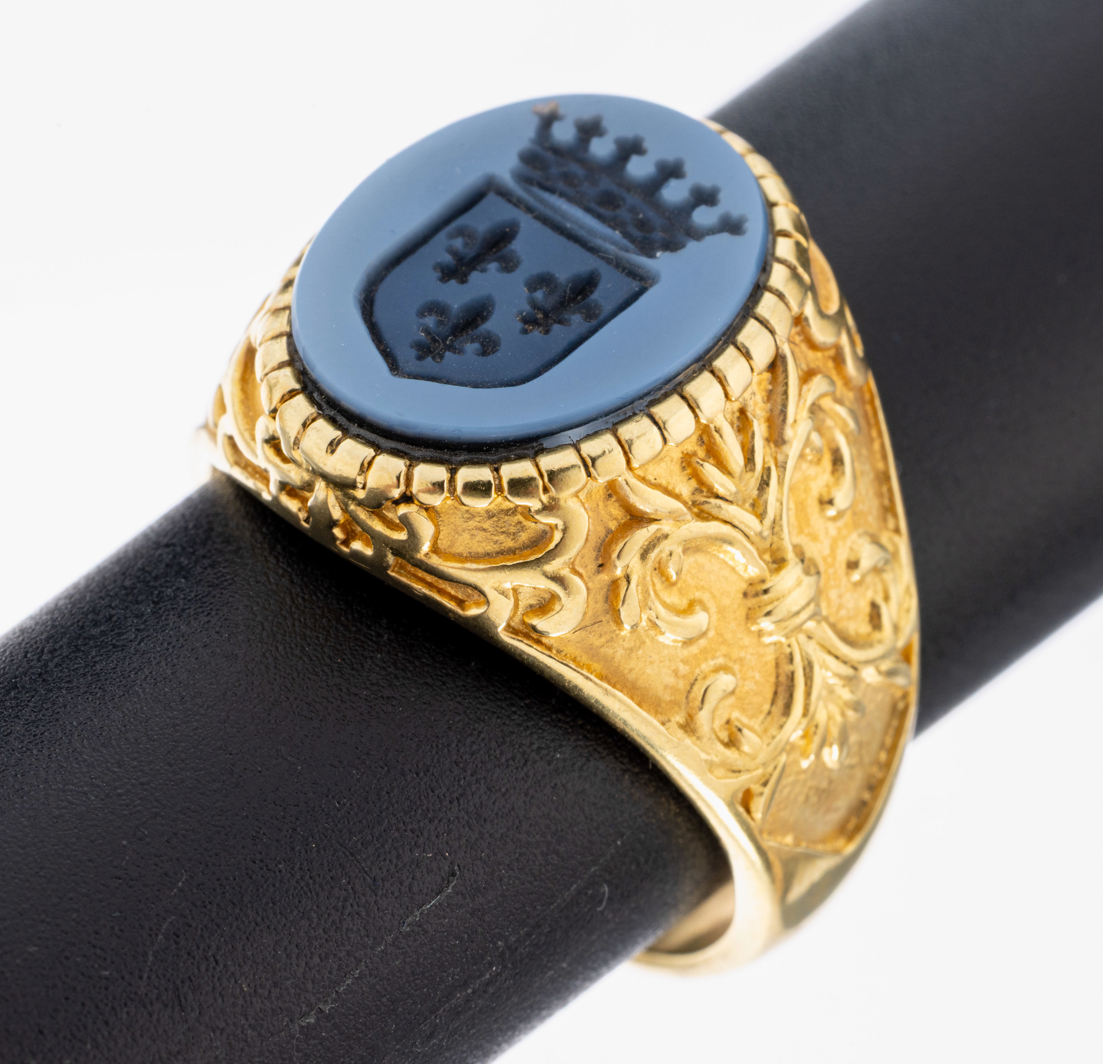 Lagenachat-Siegelring, 925er Silber vergoldet, Lagenachat Platte mit Intaglio, Darstellung