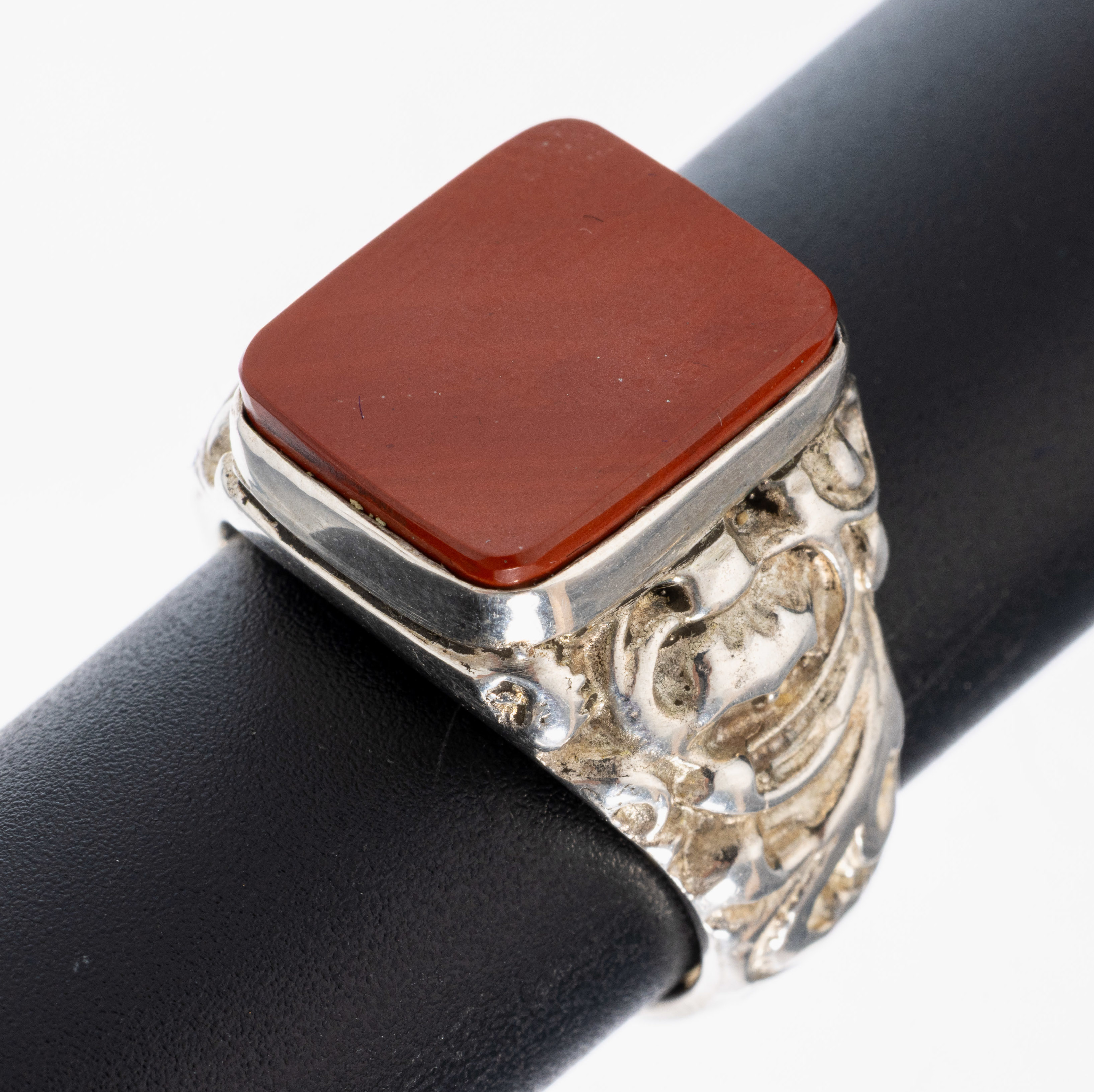 Jaspis-Siegelring, 925er Silber, freie roteJaspis-Platte, Ringschultern reich verziert,