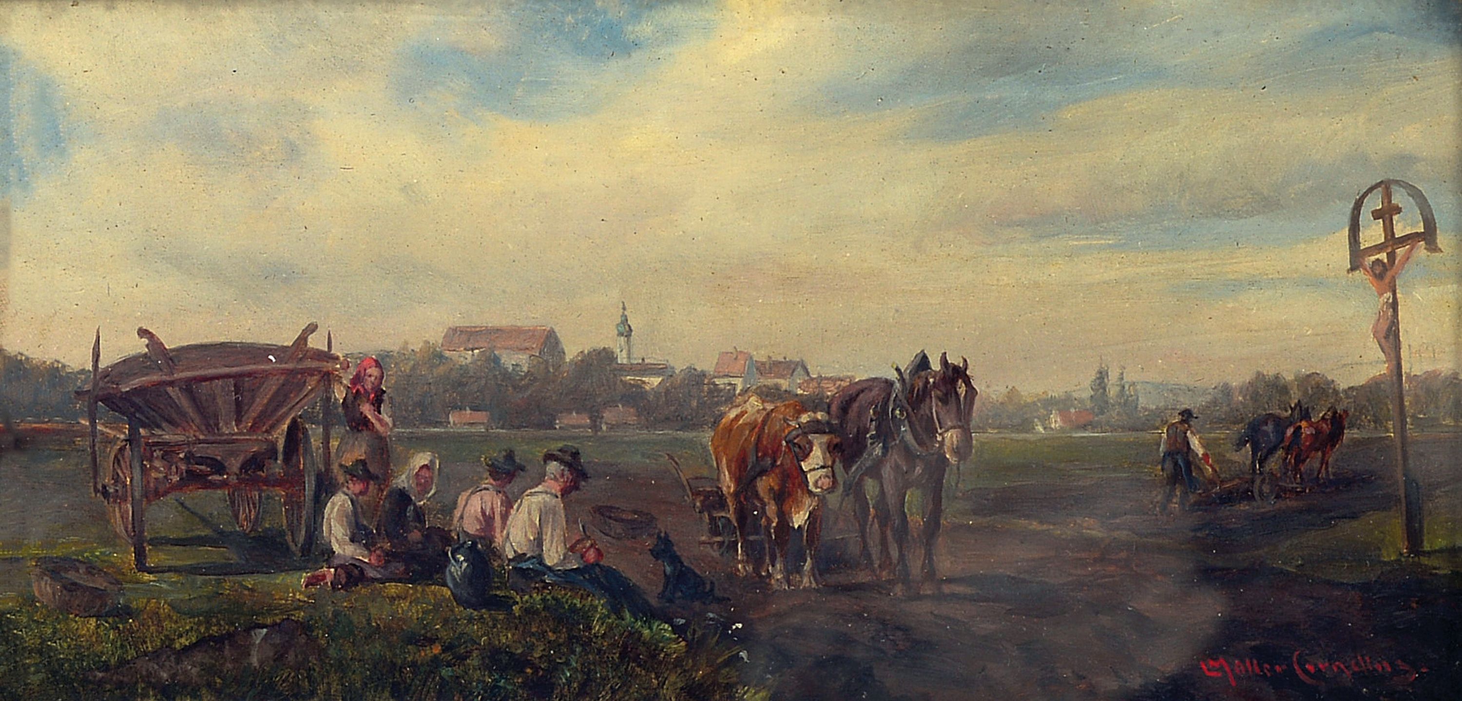 Ludwig Müller-Cornelius, 1864 - 1946 München, süddeutsche Erntelandschaft, betitelt: