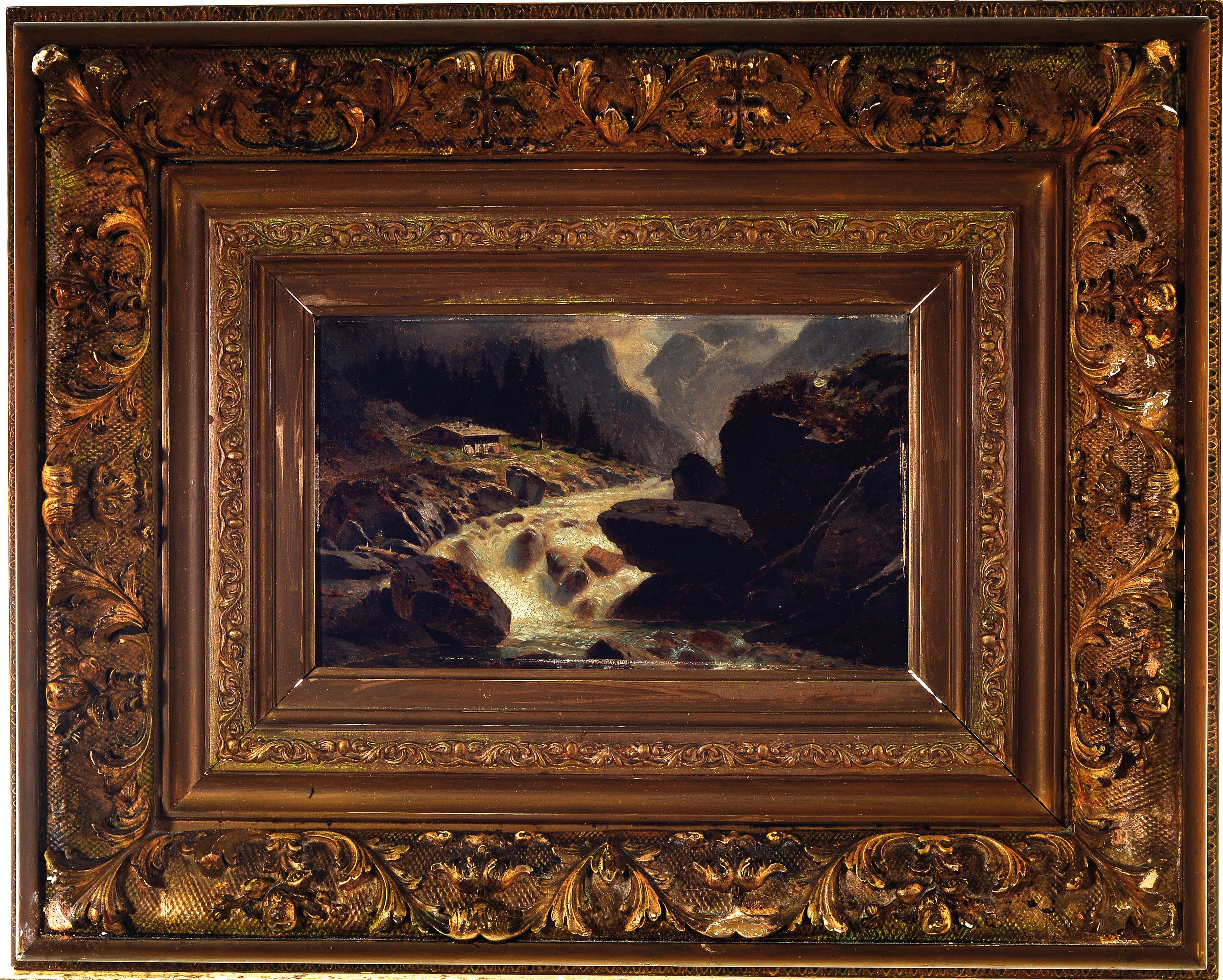 Öl/Holz, links unten signiert, 15 ,5x25,5 cm, breiter Historismusrahmen 41x51 cm