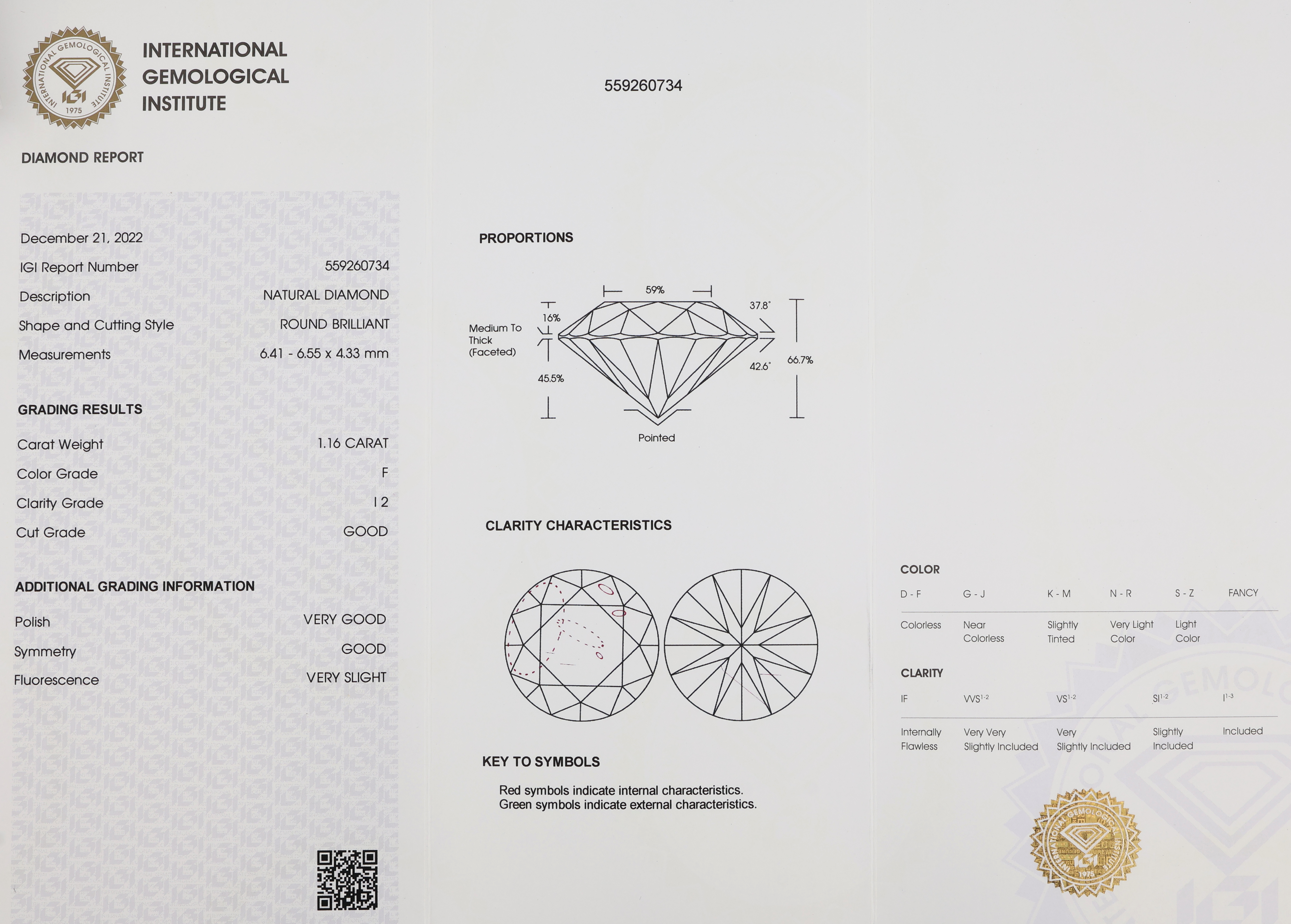 Loser Brillant 1.16 ct feines Weiß (F)/p 2, eingeschweißt, IGI Diamond Report 12/2022