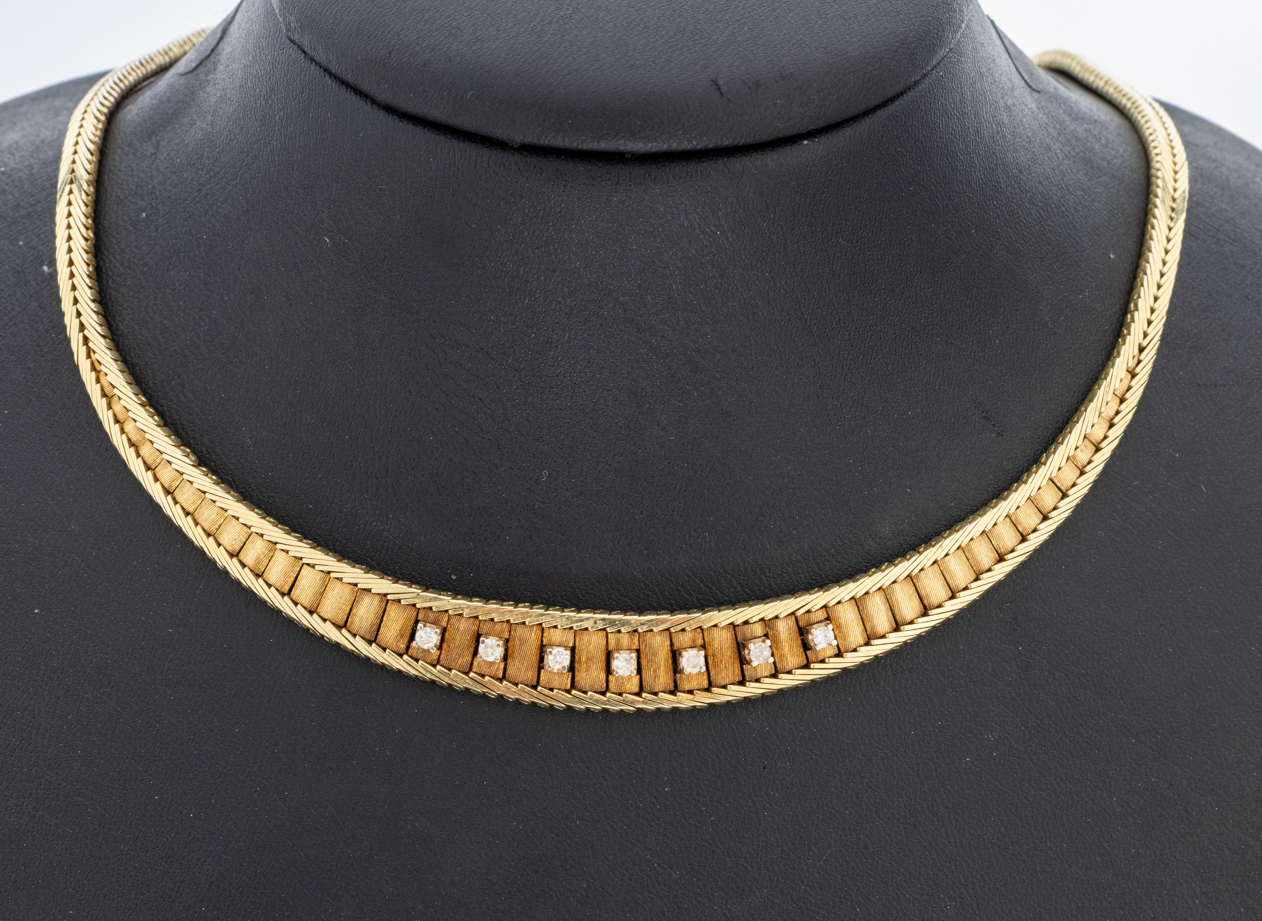 14 kt Gold Brillant-Collier, 1970er Jahre, GG 585/000, Fischgrätmuster im Verlauf,