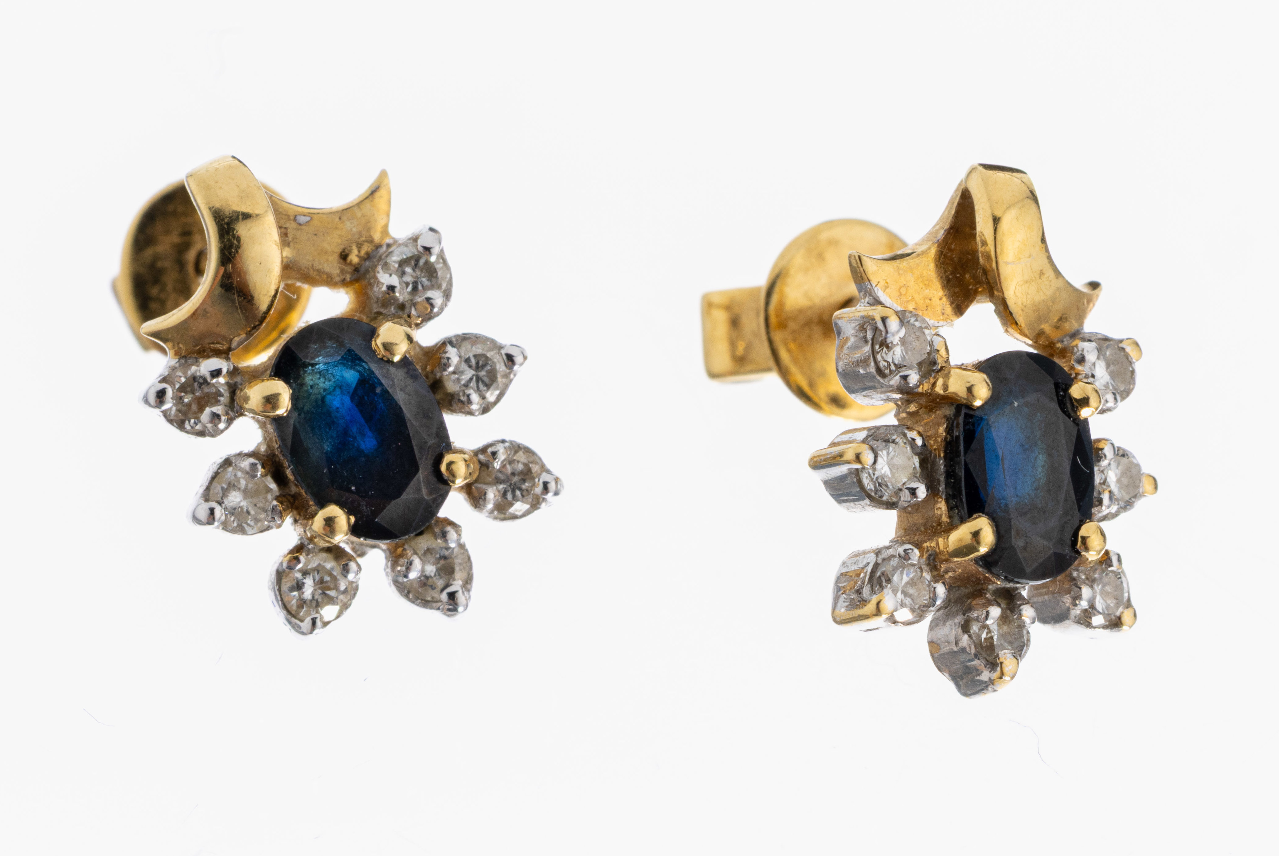Paar 18 kt Gold Saphir-Brillant-Ohrstecker, GG/WG 750/000, 2 ovalfacett. Saphire