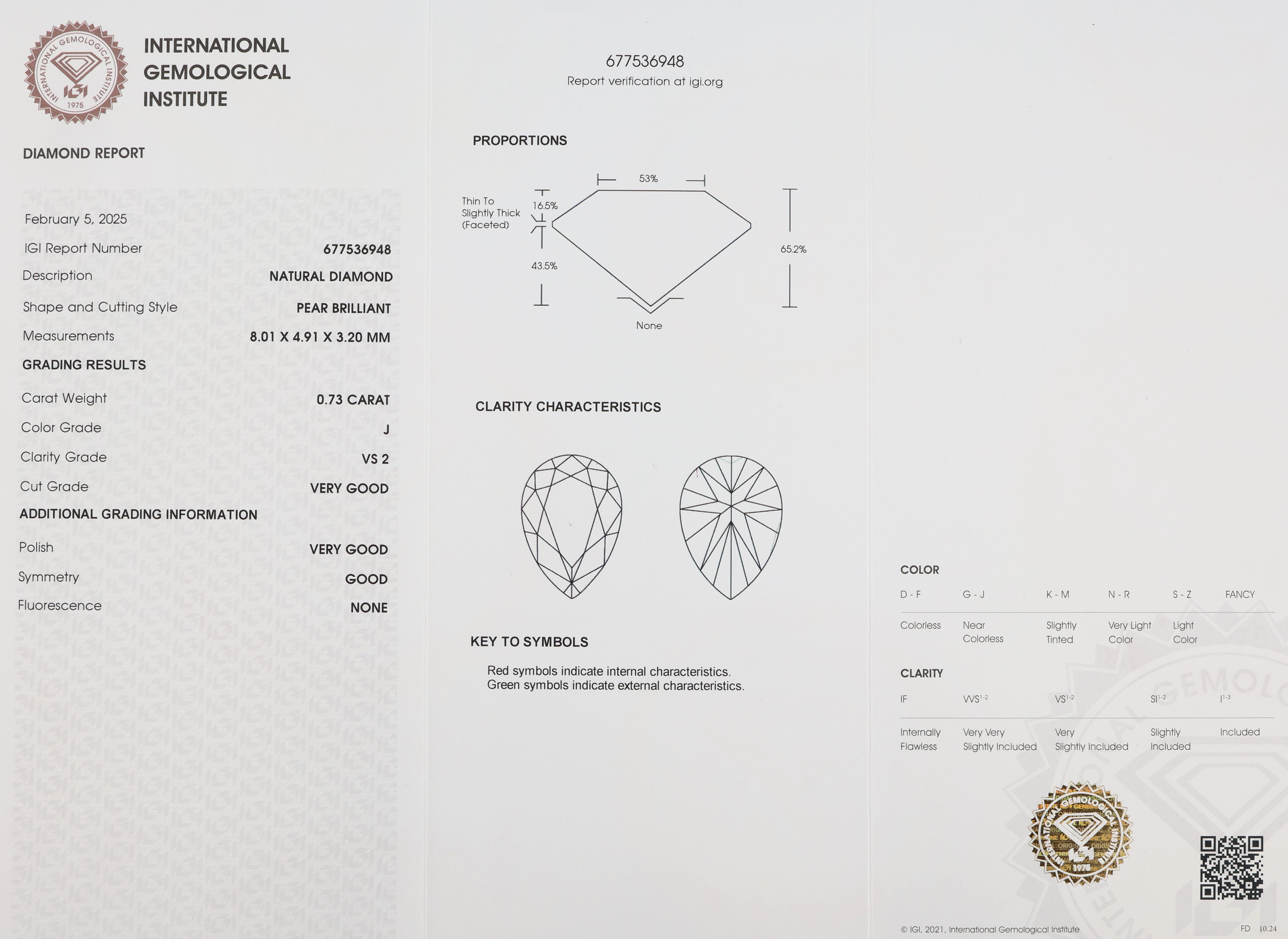 Loser Diamant 0.73 ct l. get. Weiß (J)/vs 2, facett. Tropfen, eingeschweißt, IGI-Report