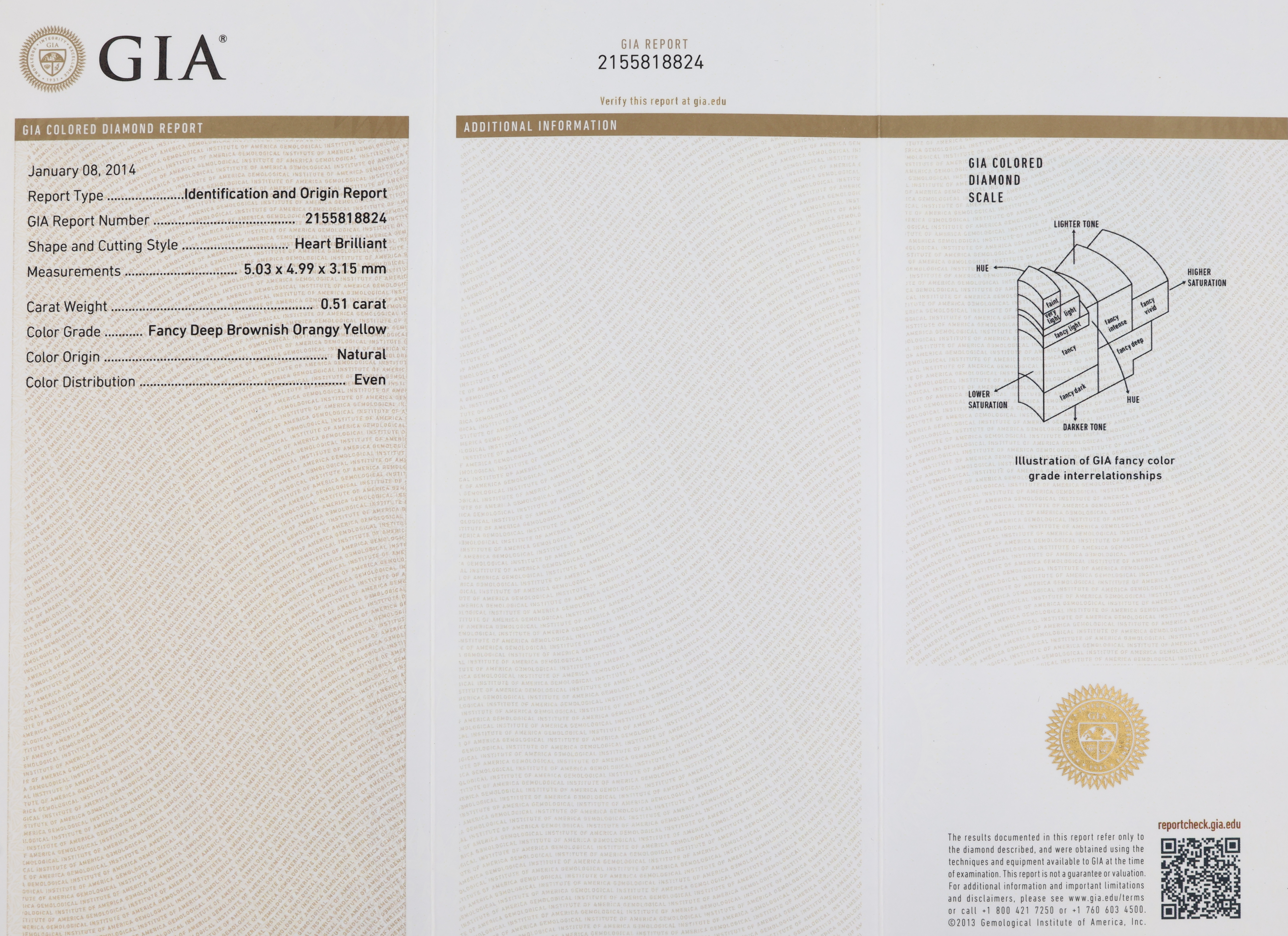 Loses Diamant Herz 0.51 ct natural fancy deep brownish orangy yellow, eingeschweißt, GIA Report 01/2014