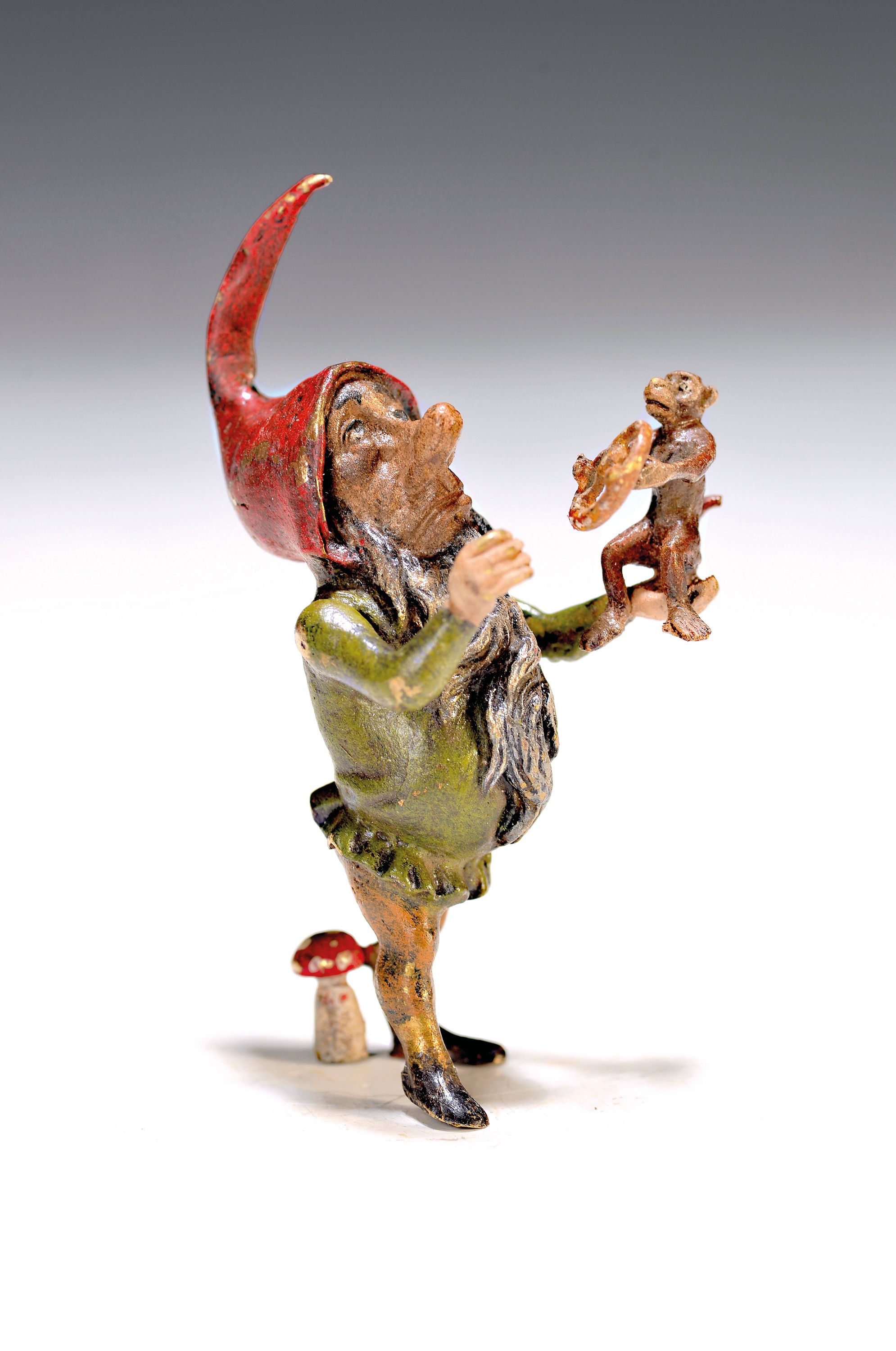 Wiener Bronze, Zwerg mit Äffchen, an der Mütze sign. Bergmann, bunt staffiert,