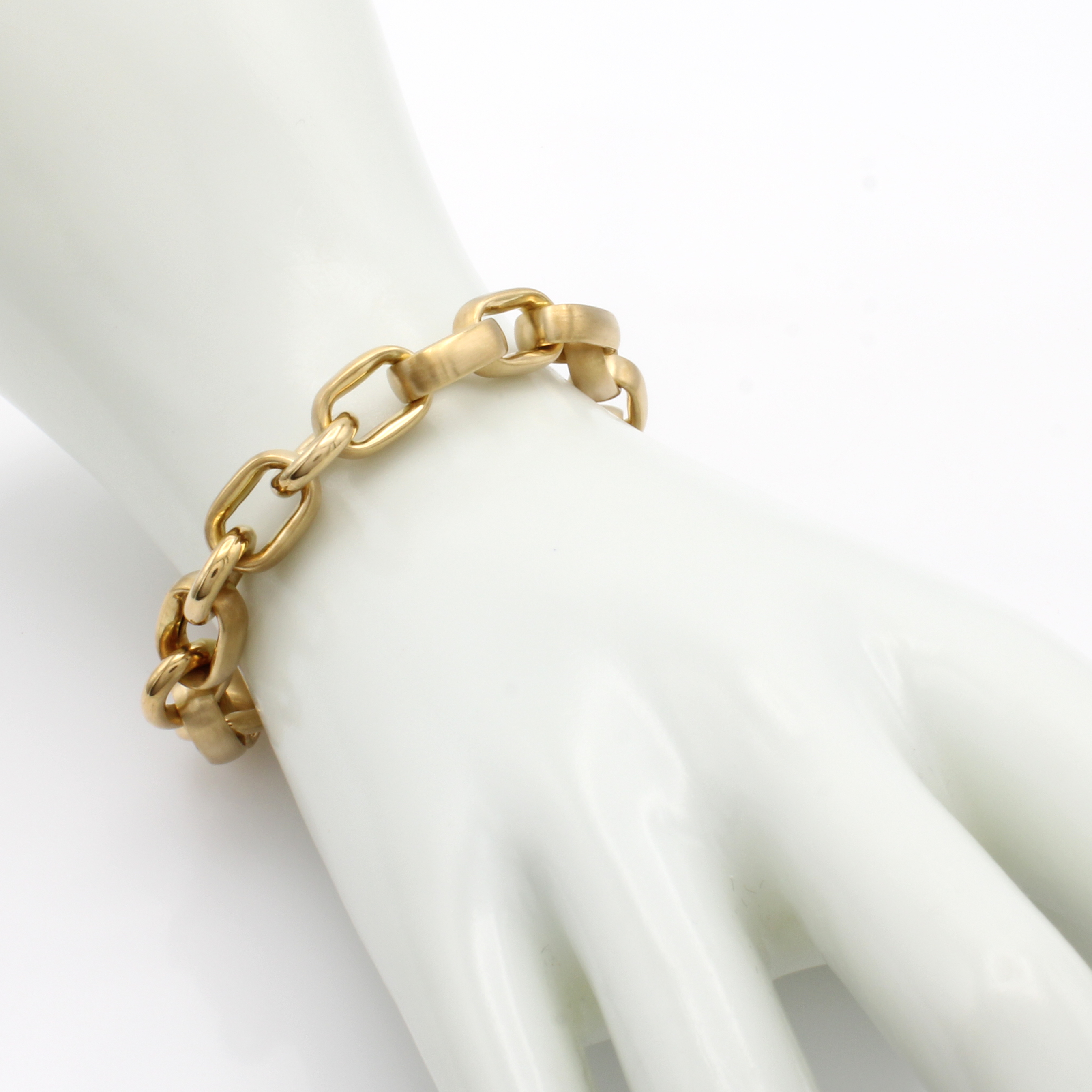 Gliederarmband, GG 750/000, z.T. matt., polierte, runde Zwischenösen, integrierte Schließe, L. ca. 20.5 cm