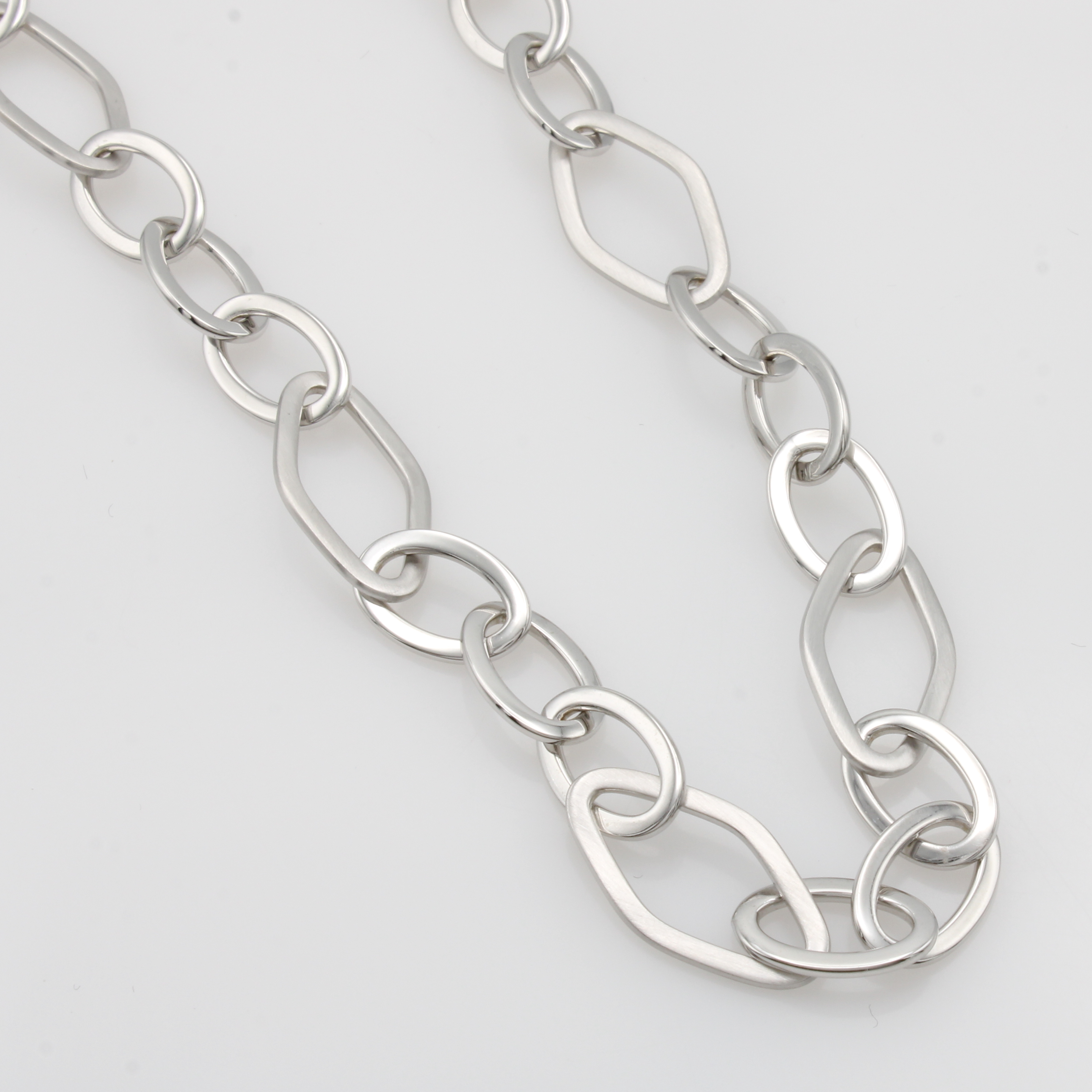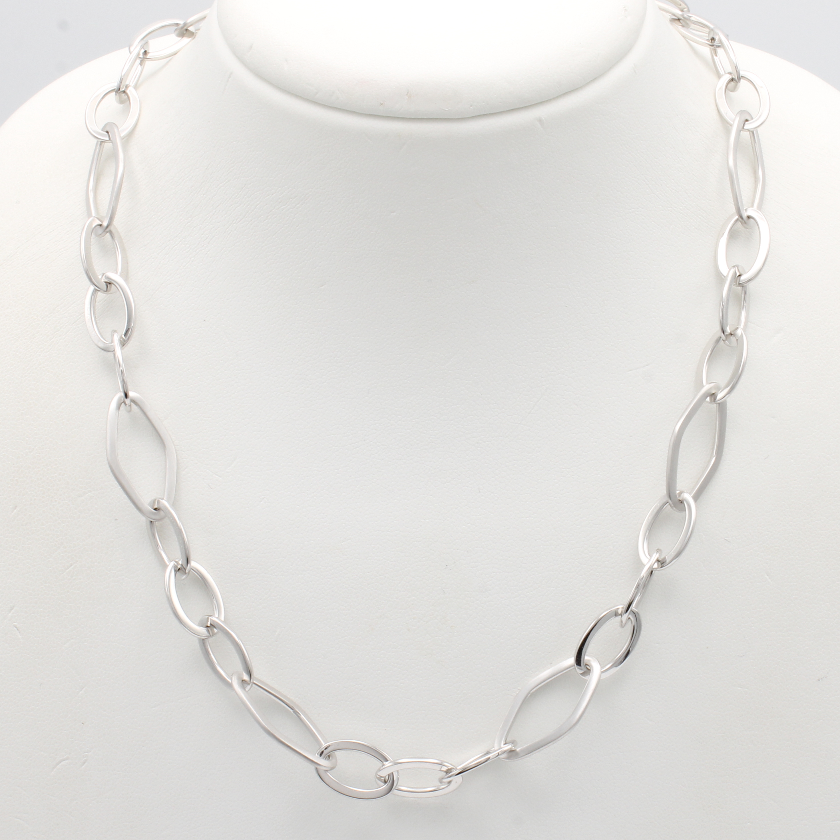 Gliederkette, WG 750/000, ovale, polierte Glieder, eckige Zwischenglieder matt., Karabinerschl., L. ca. 45 cm