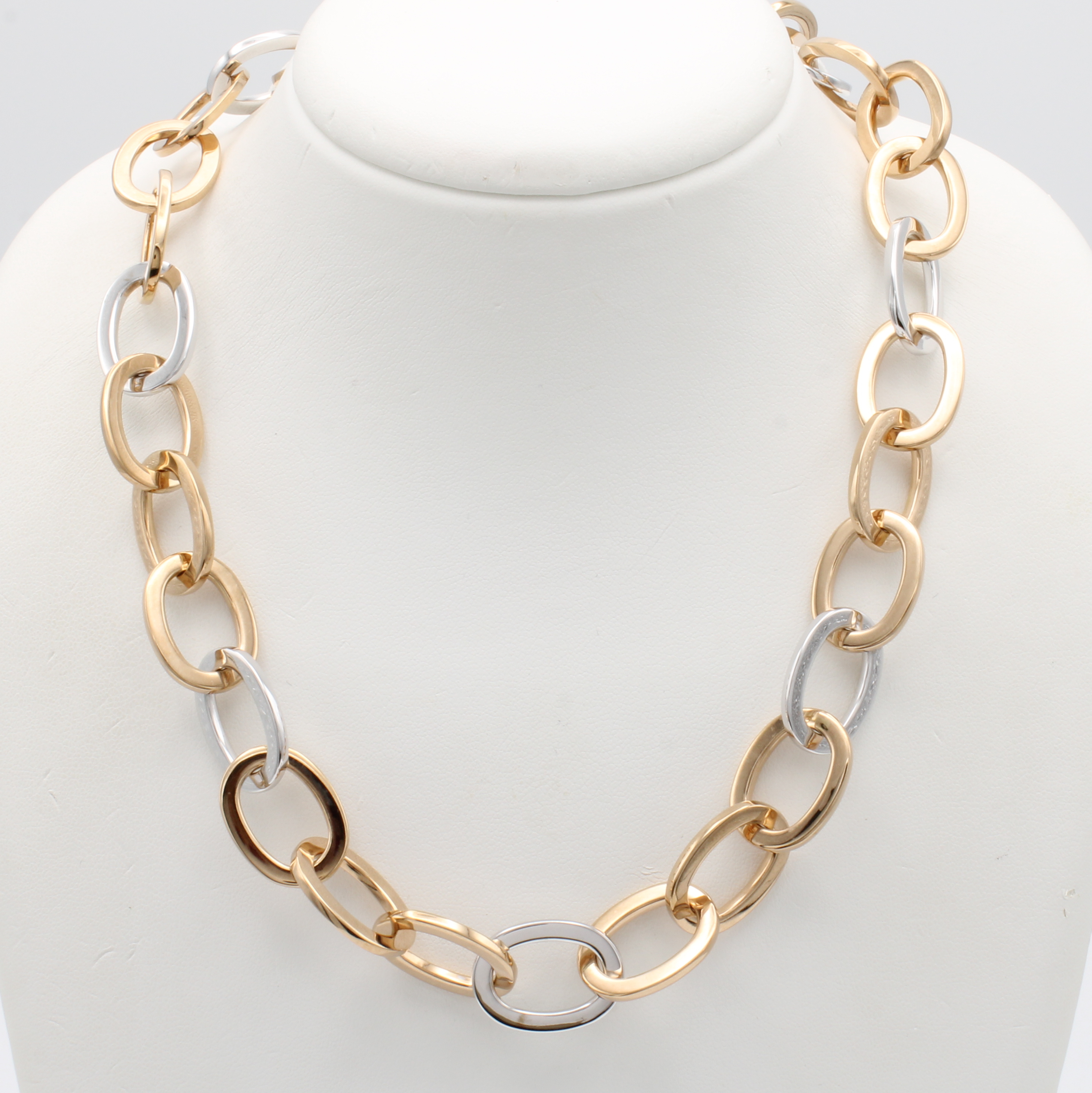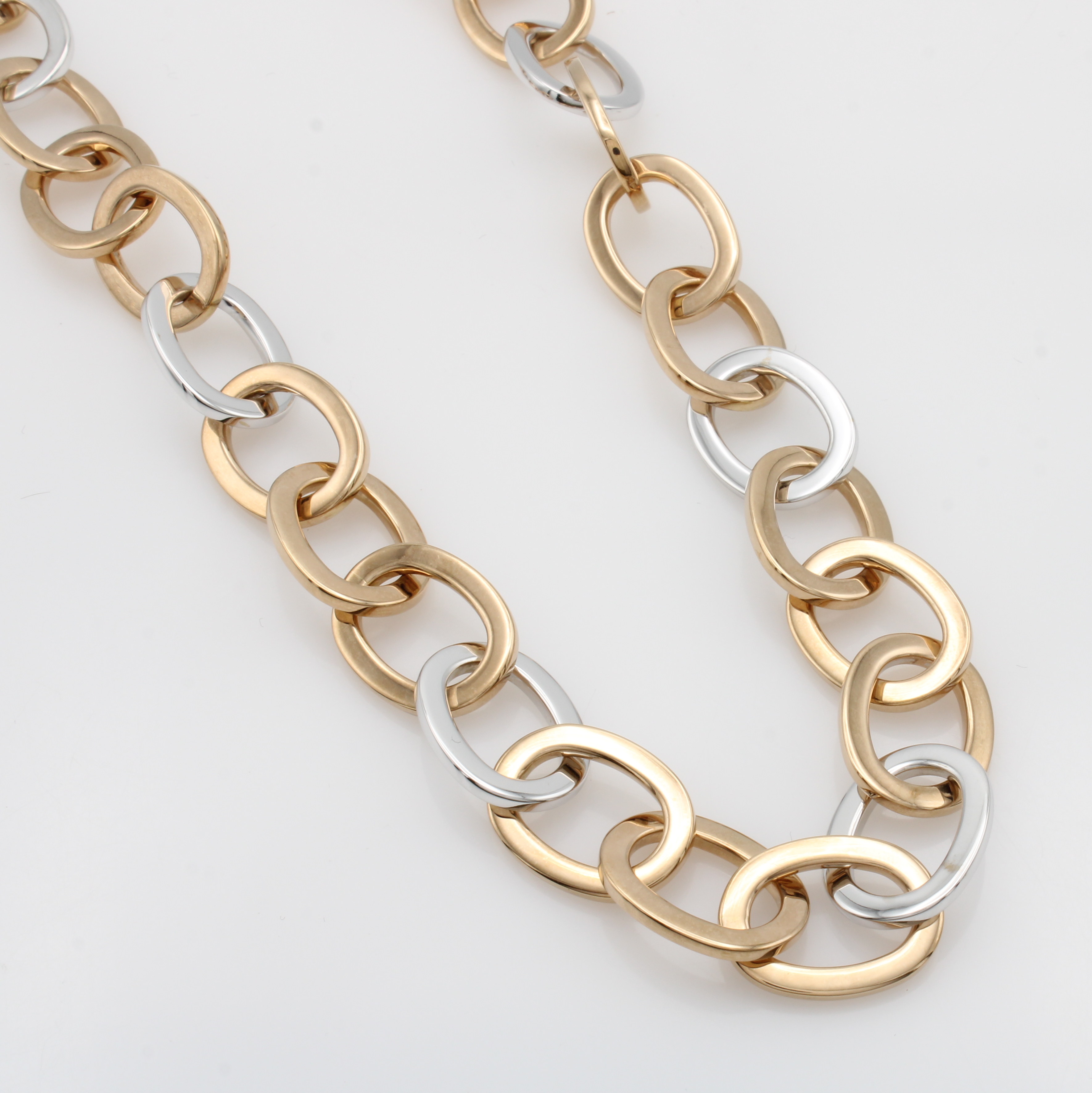 Gliederkette, RG/WG 750/000, ovale Glieder, Brill. in integrierter Schließe ca. 0.03 ct feines Weiß/vs, L. ca. 50 cm