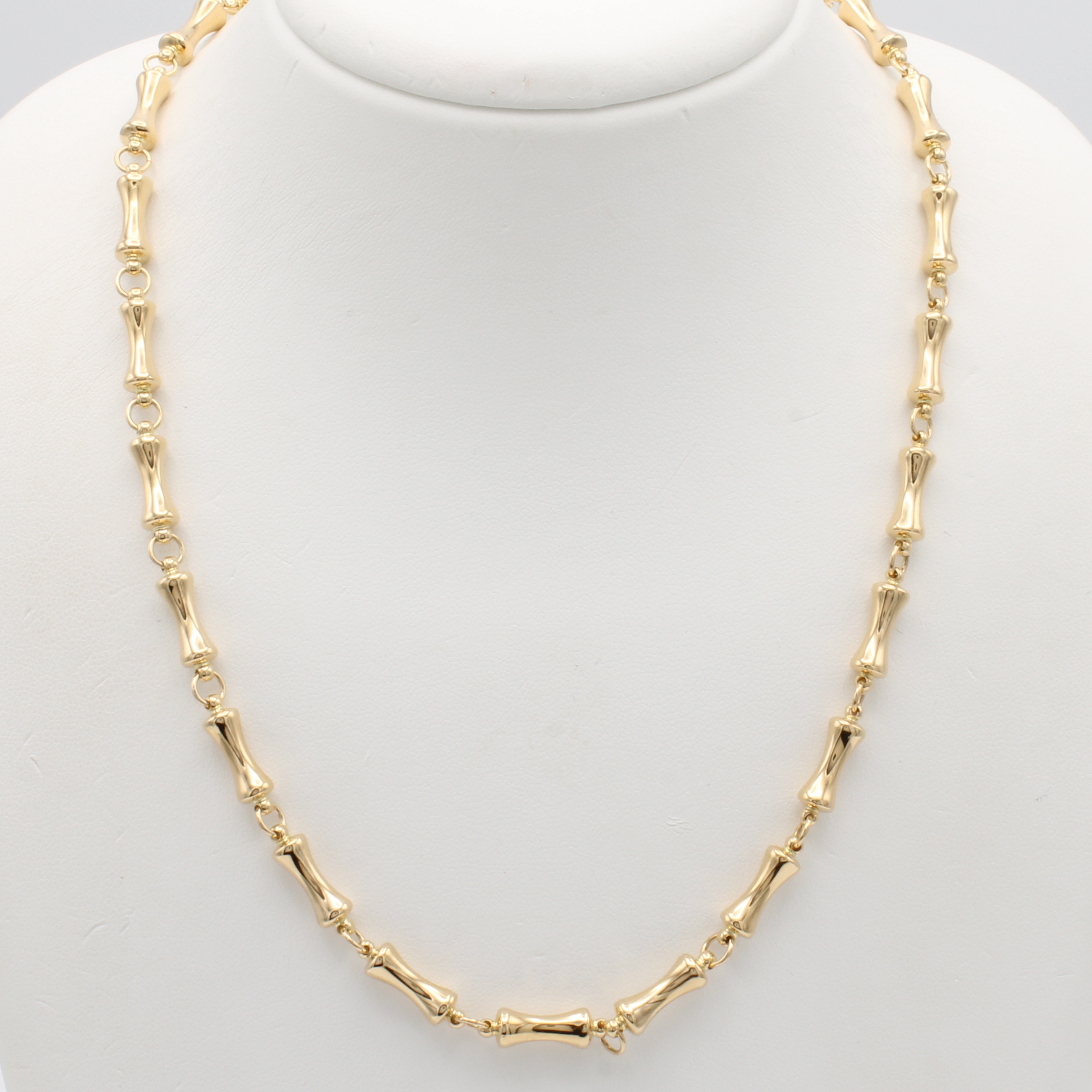 Gliedercollier, GG 750/000, Glieder in konkaver Säulenform, Karabinerschl., L. ca. 43.5 cm