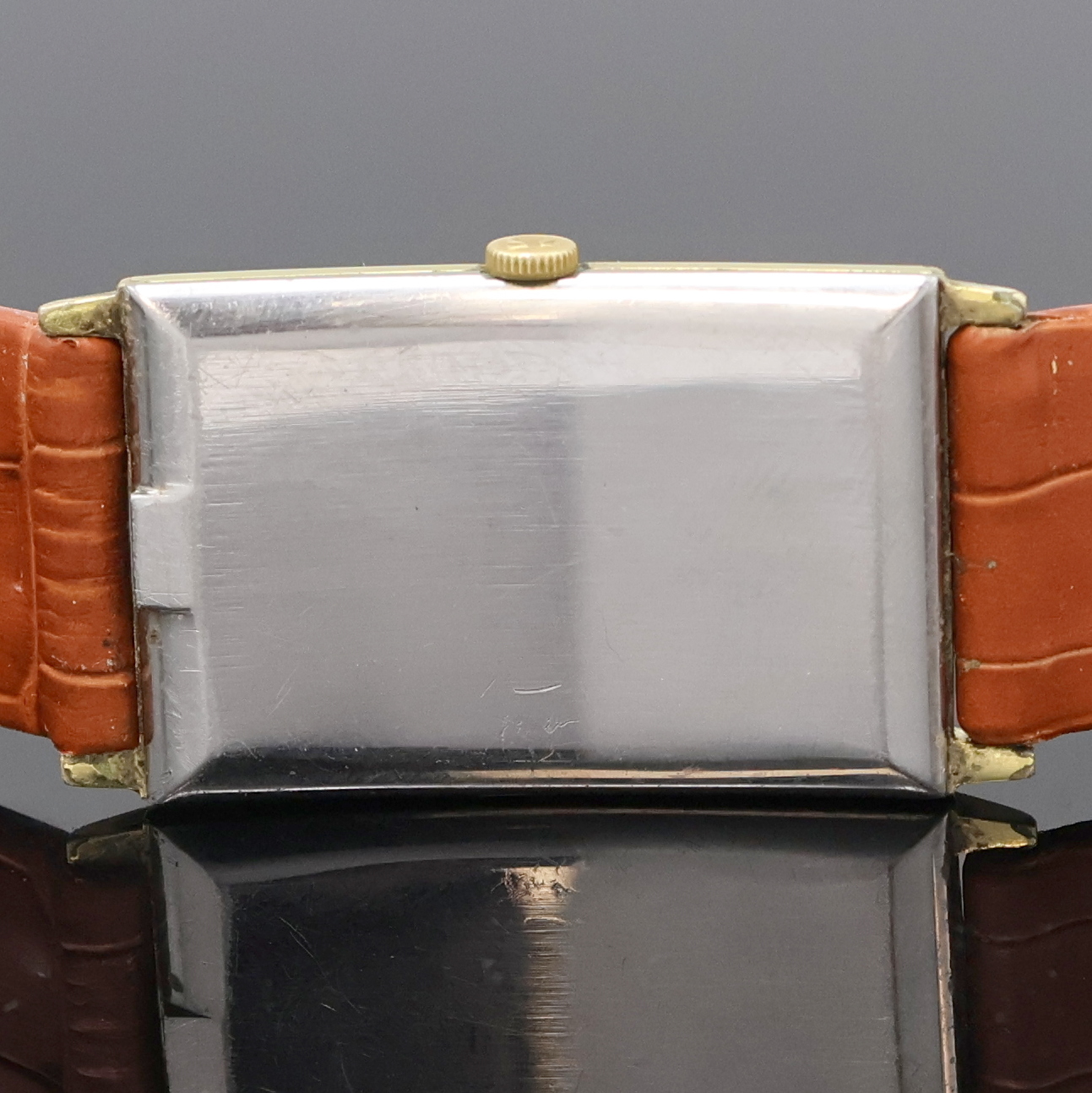 Edelstahlboden aufgedr., silb. Zifferbl. pat./fl., schwarze Zeiger, aufgel. Std.-Ind.,