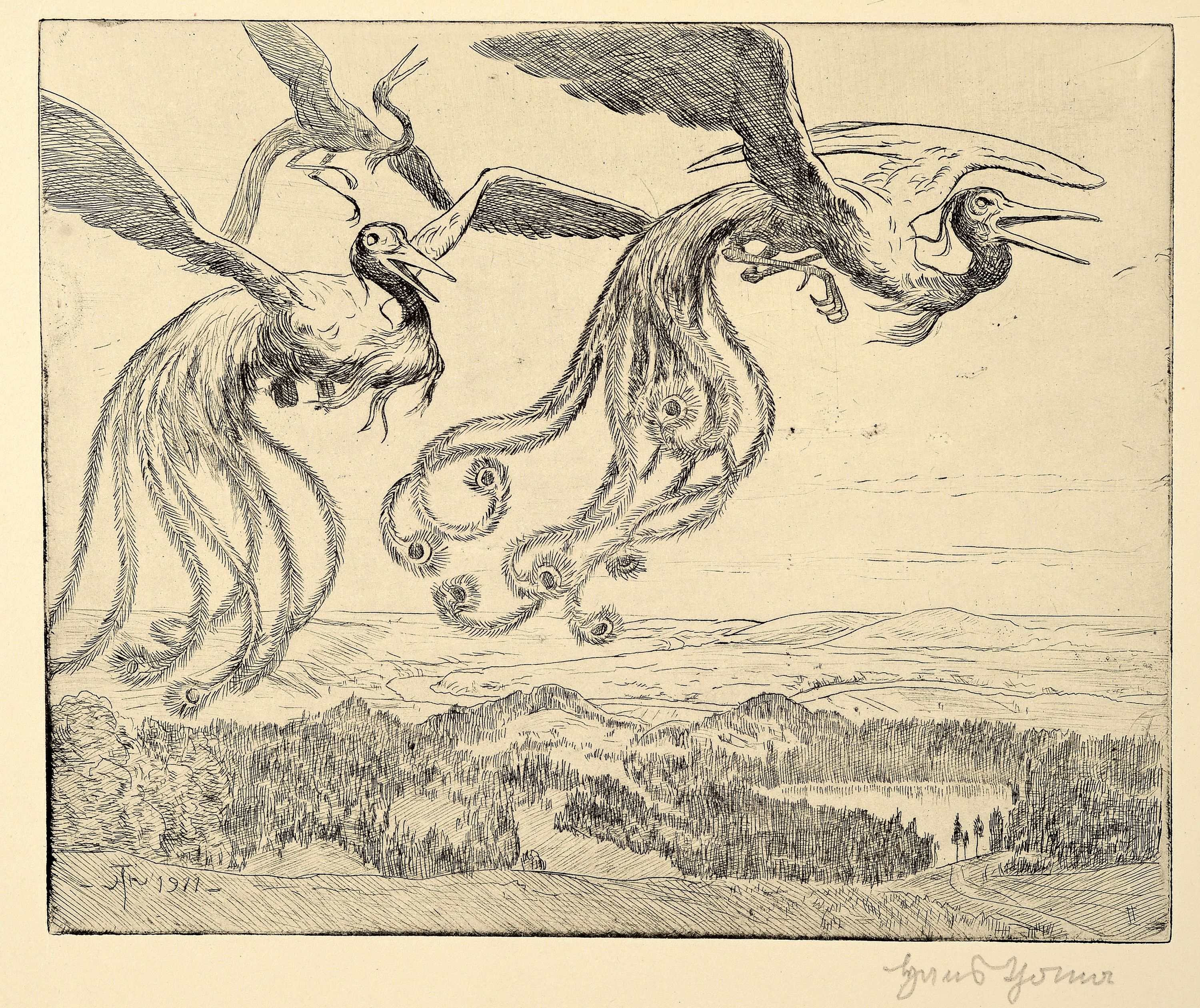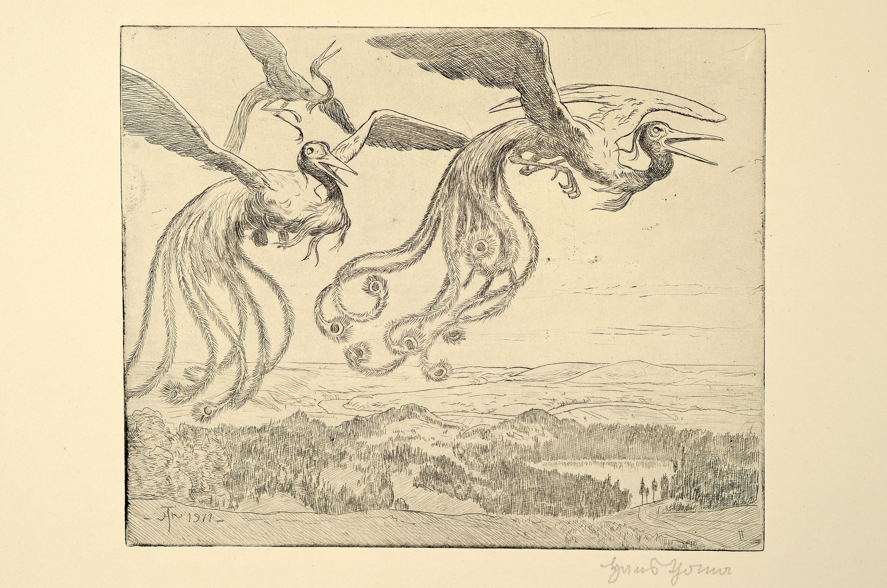 Hirte, von 1897, ca. 26.5x22cm; 2) Wundervögel, von 1911, ca. 20x24.5cm, am unteren