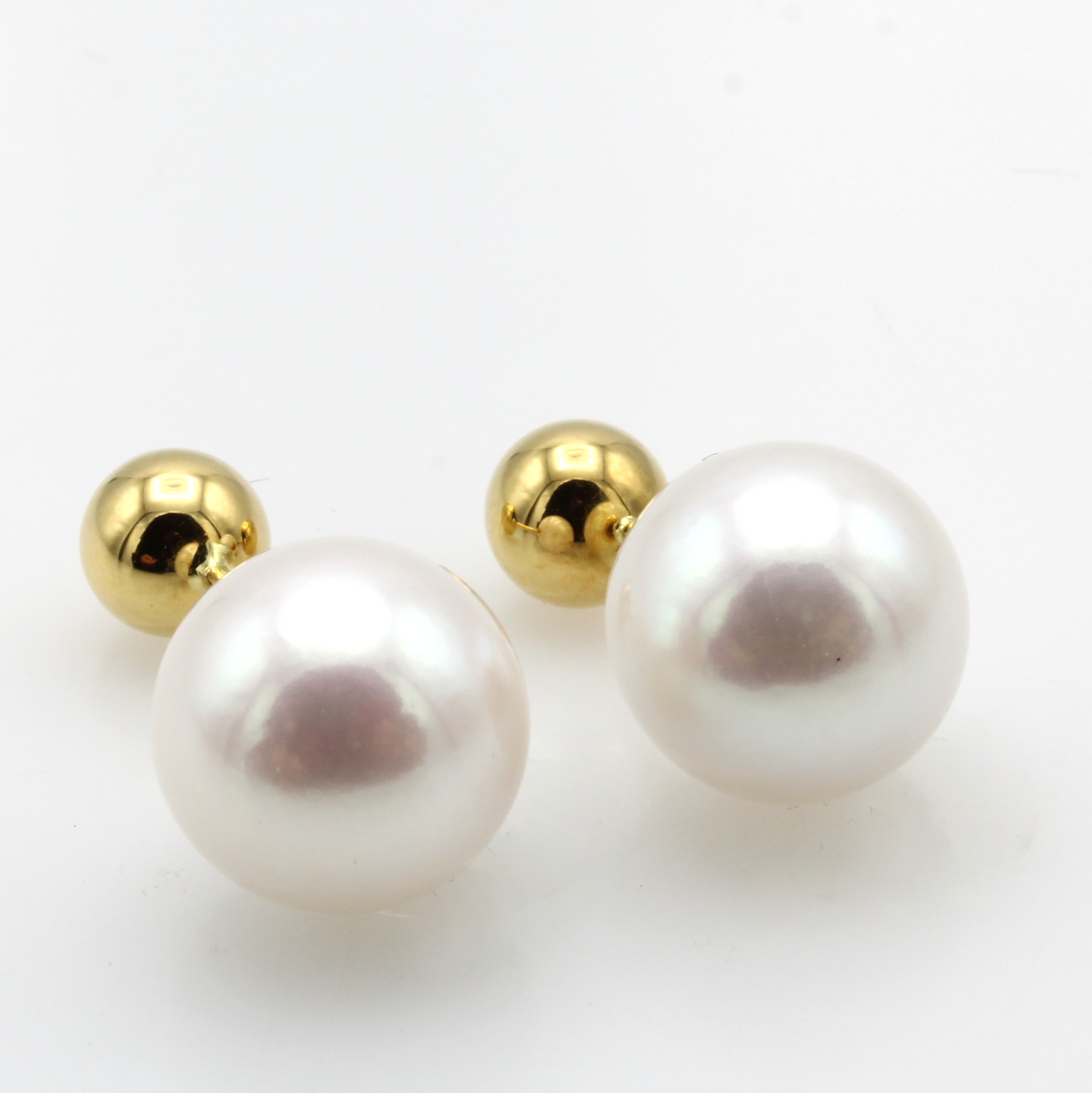 Paar Ohrstecker mit Süßwasserzuchtperlen "double face", GG 750/000, weiße Perlen, D. ca. 11-12 mm Schätzpreis: 2200, - EUR