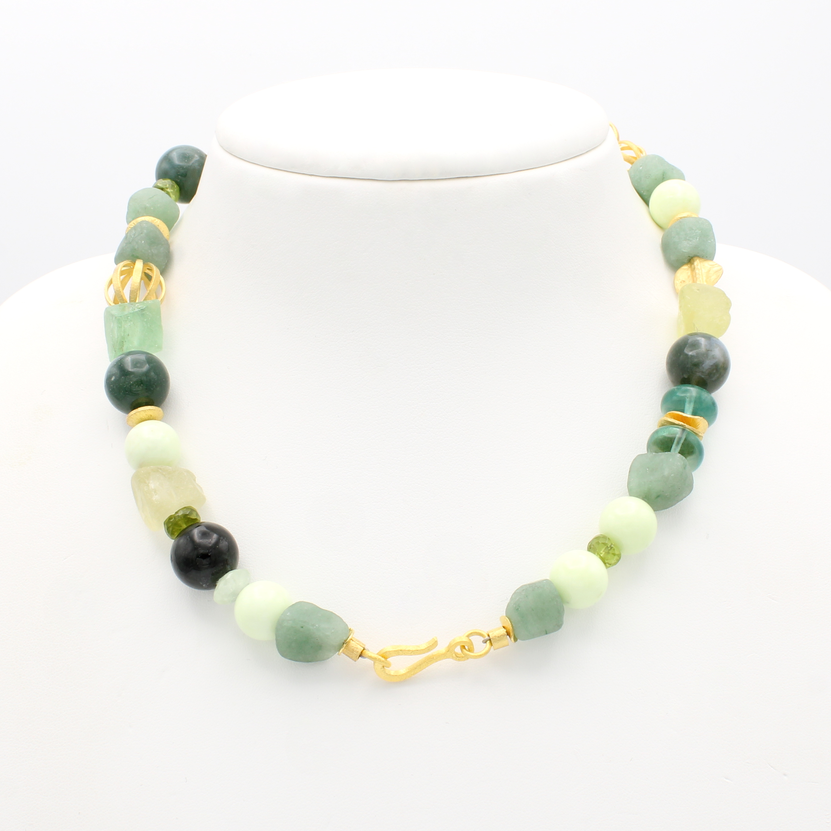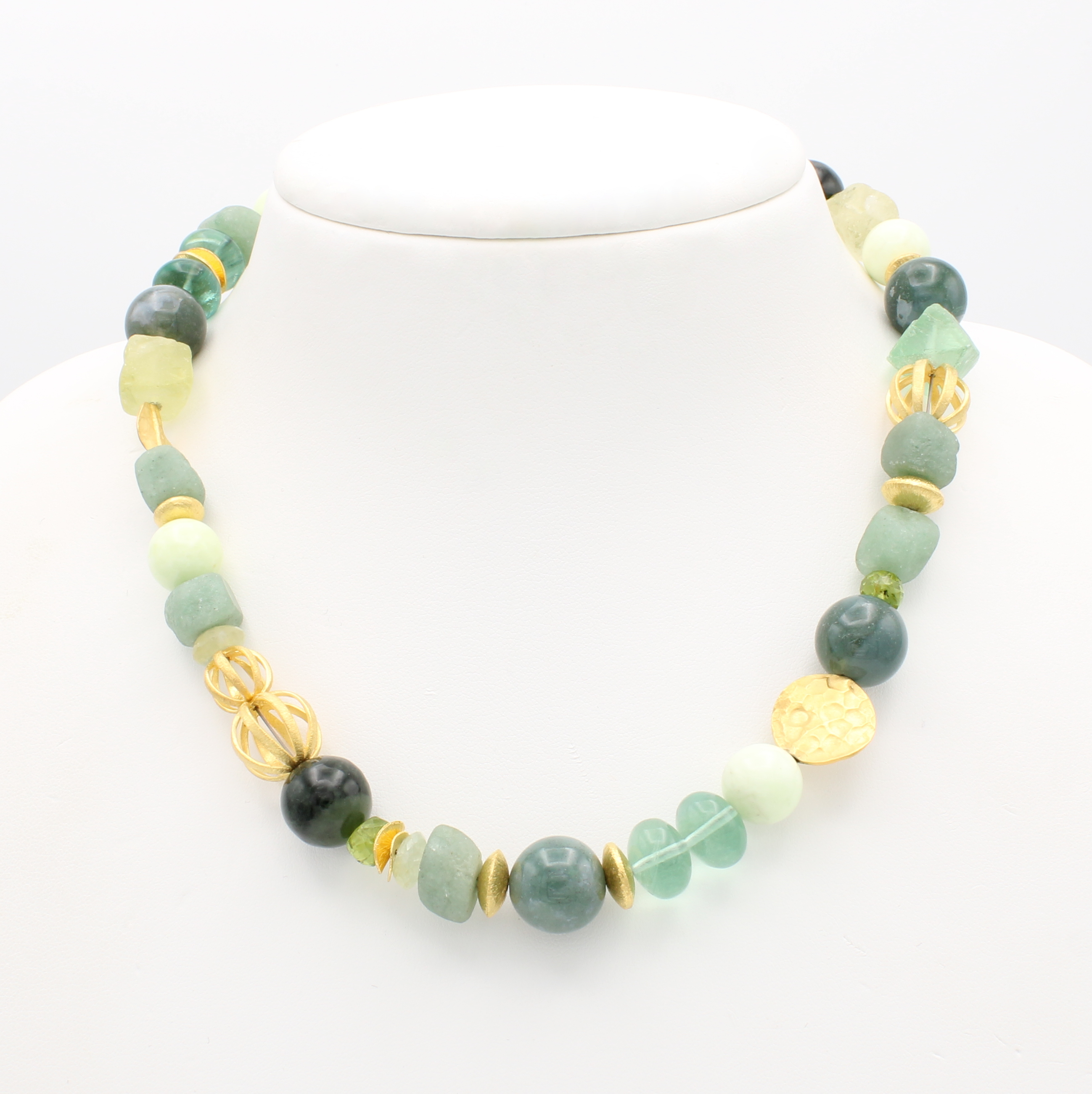 Collier aus versch. Halbedelsteinen, Schließe u. Zwischenteile Silber verg., Achate und Quarz, L. ca. 47 cm Schätzpreis: 900, - EUR