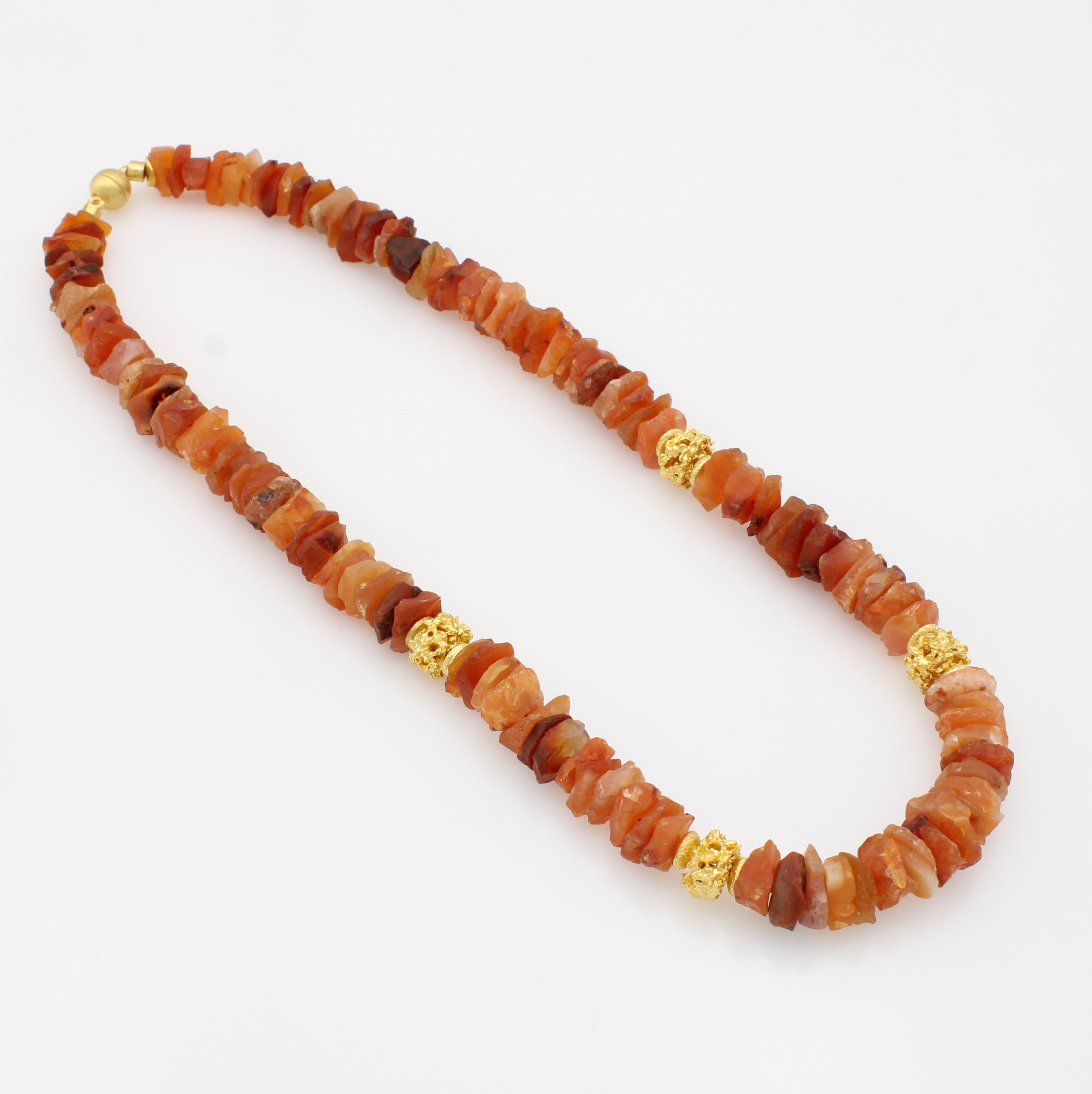 Collier aus Karneolen, Magnetschließe und Zwischenteile Silber verg., ungeschliffene Karneole, L. ca. 47 cm Schätzpreis: 750, - EUR