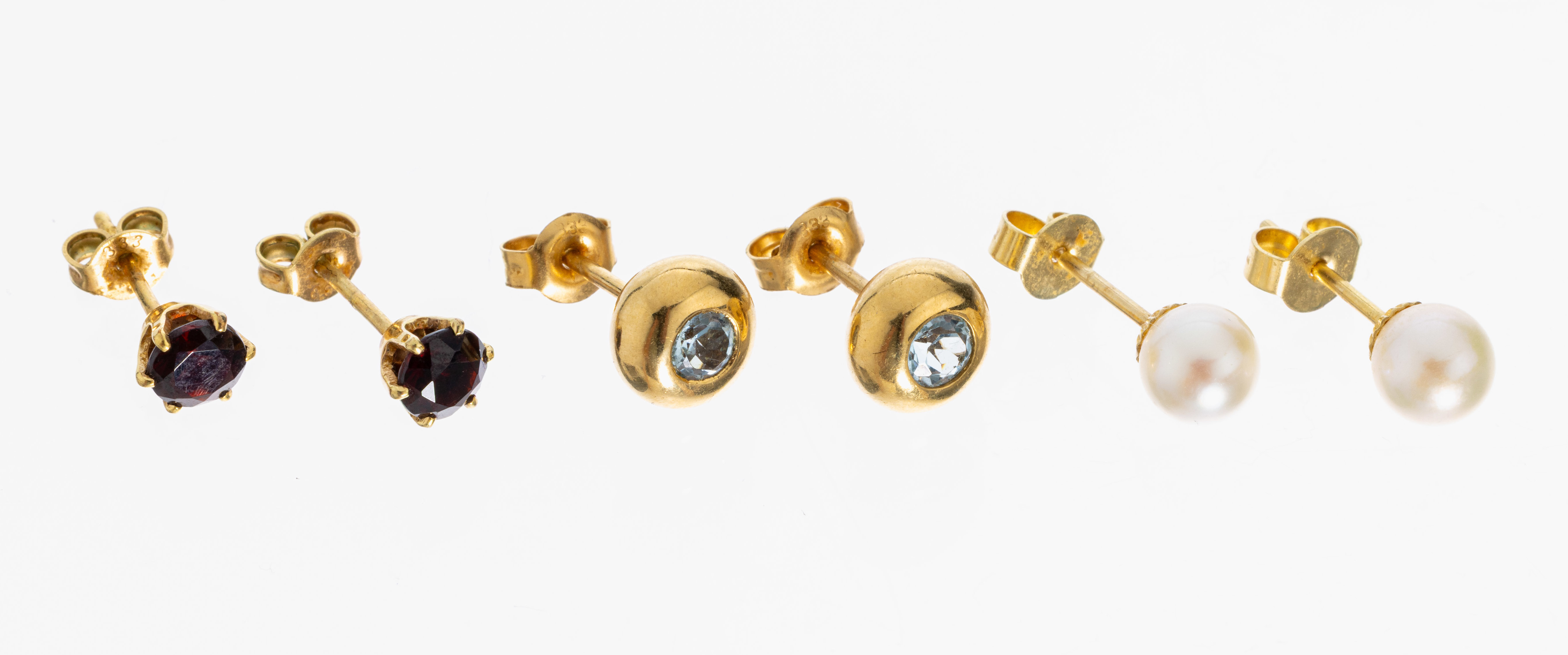 Konvolut 3 Paar Ohrstecker, 1 x GG 585/000,mit Akoyazuchtperlen, 1 x GG 333/1000
