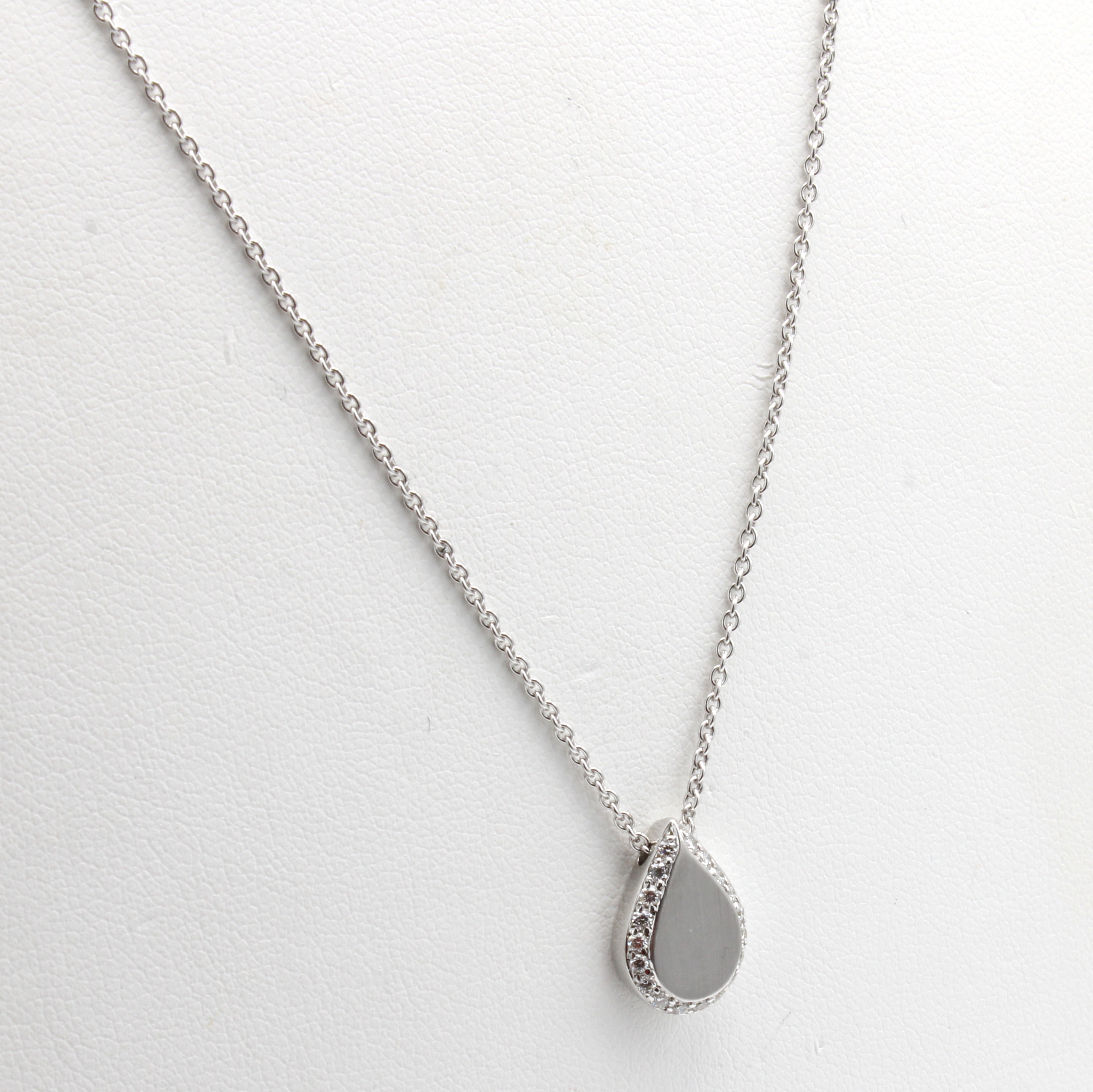Collier mit Brillanten, WG 585/000, tropfen-förm. Anhänger bes. m. Brill. zus. ca. 0.19 ct Weiß/si, L. ca. 42 cm Schätzpreis: 1100, - EUR