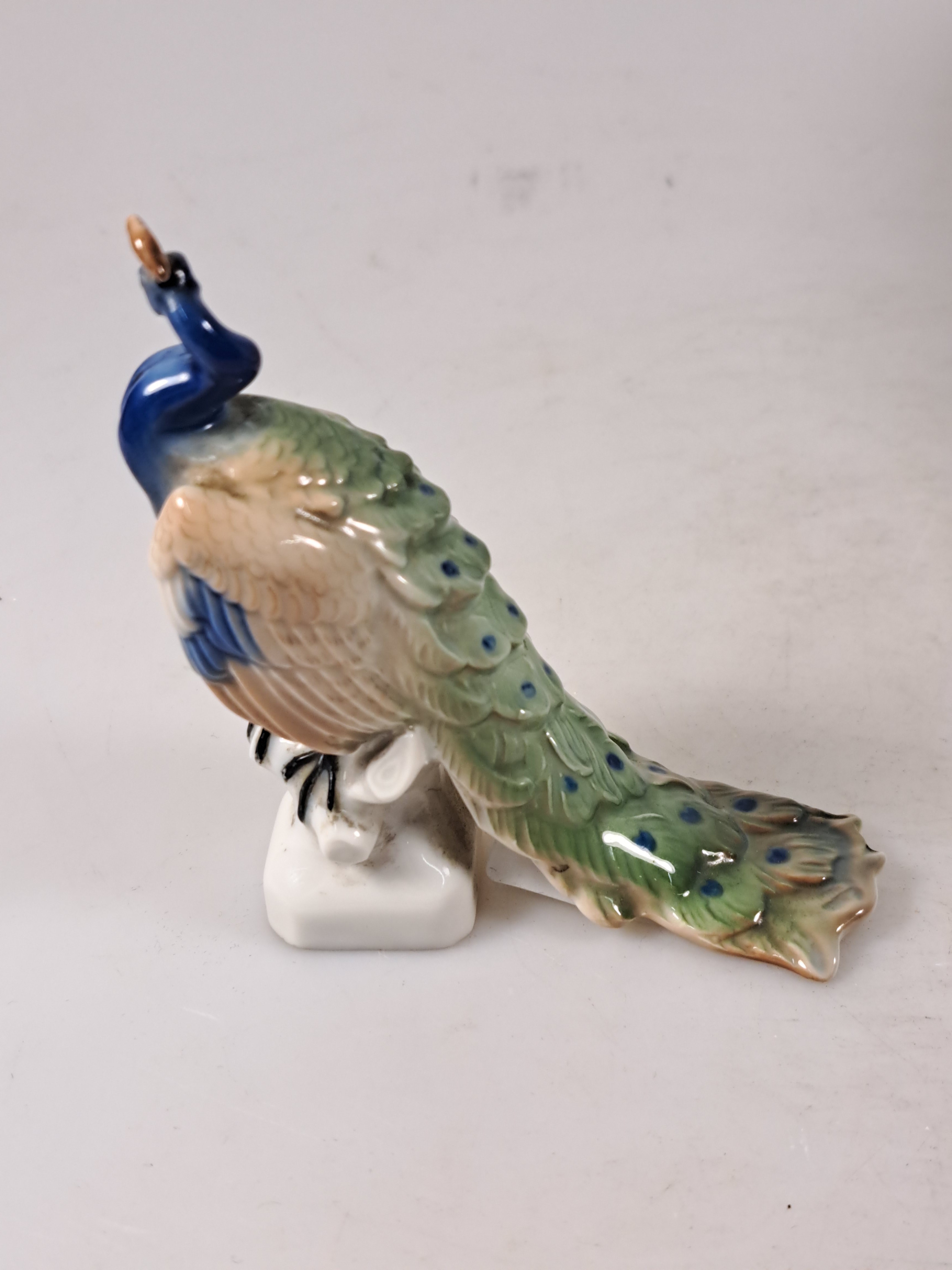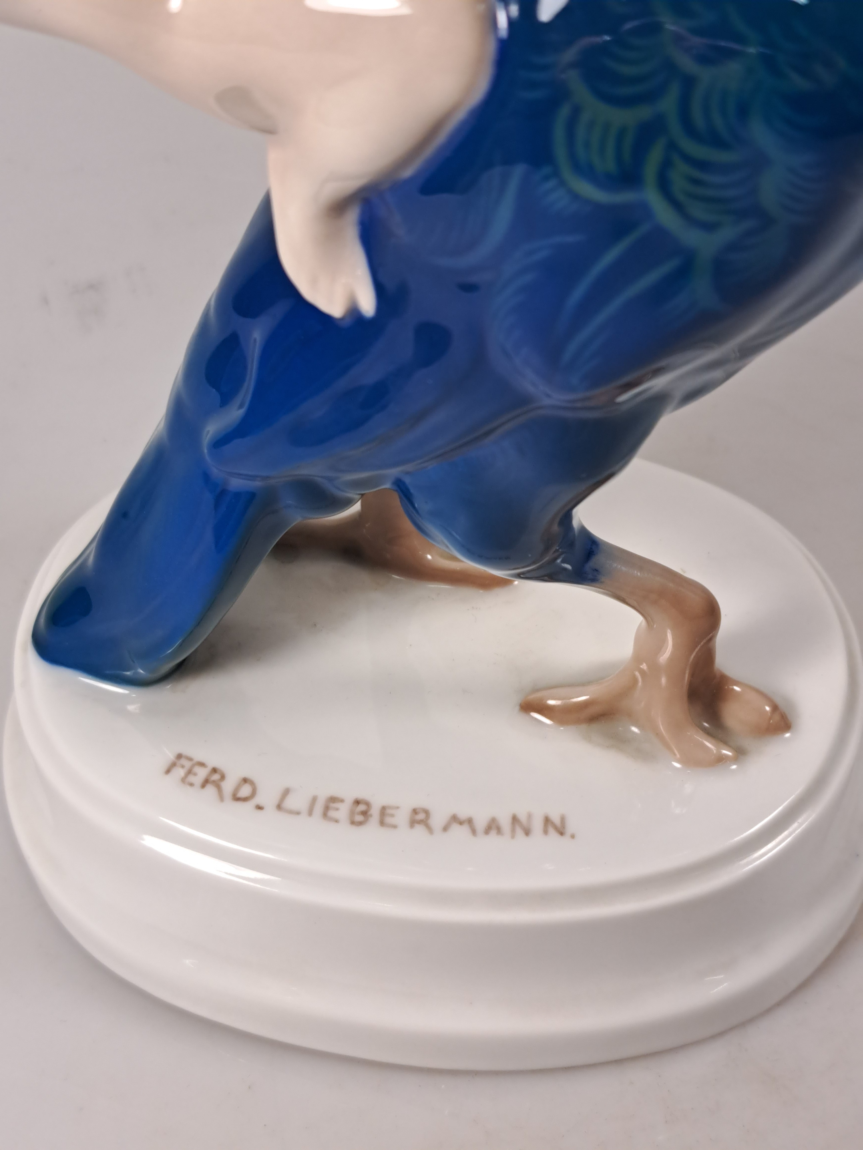 Unterglasurbemalung, H. ca.23 cm, sign. u. sitzender Pfau, Entw. wohl Gustav Oppel,