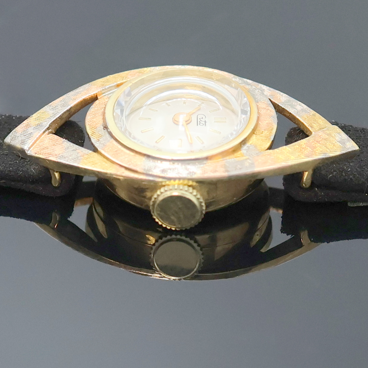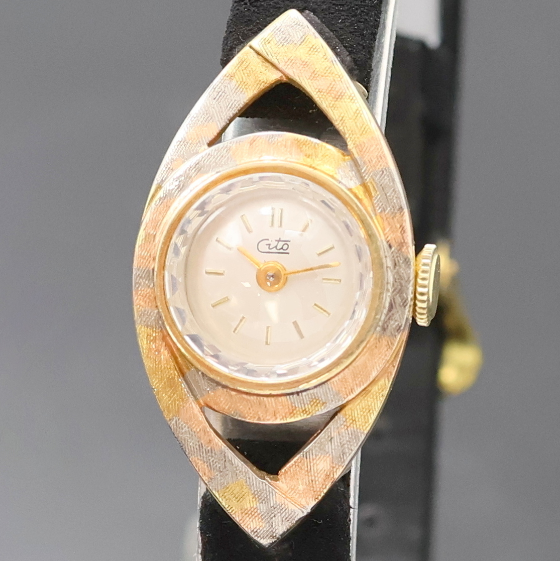 CITO Damenarmbanduhr in GG 585/000, Schweiz um 1965, Handaufzug, Geh. teils mit Tricolor