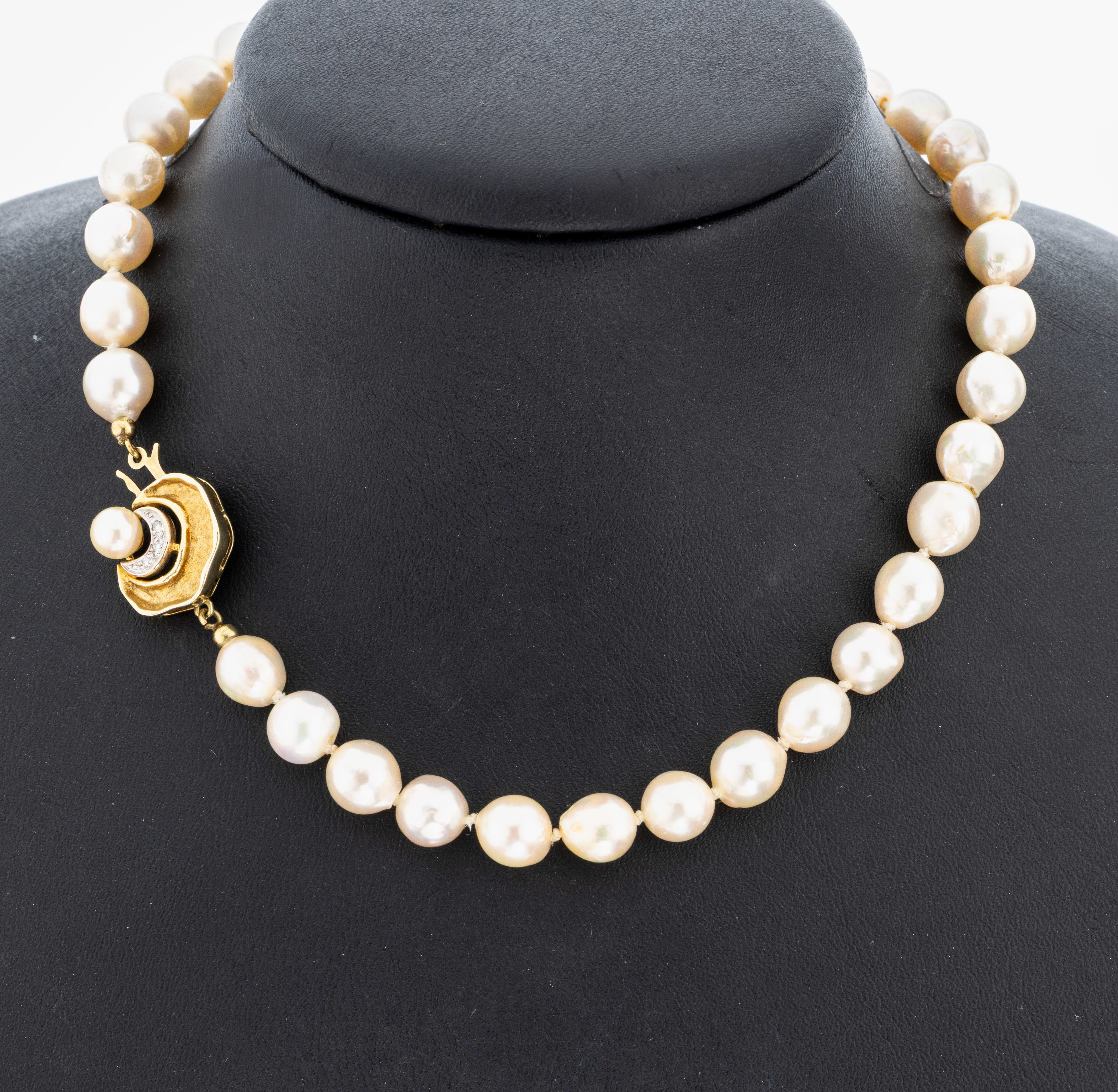 Perl-Collier mit 14 kt Gold Diamant- Schmuckschließe, GG 585/000, weiße unrunde