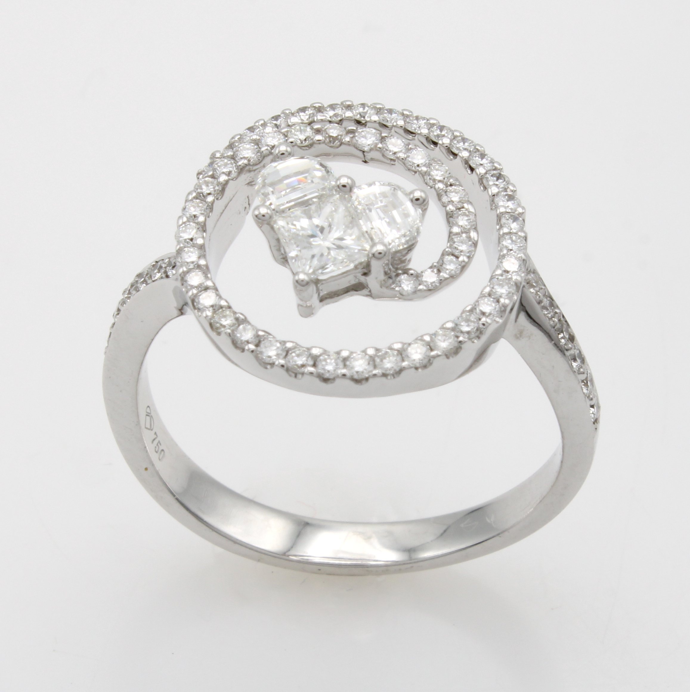 Ring mit Brillanten und Diamanten "invisible setting", WG 750/000, Brill. u. Diam. zus. ca. 0.79 ct feines Weiß/vs, RW ca. 55 Schätzpreis: 3400, - EUR