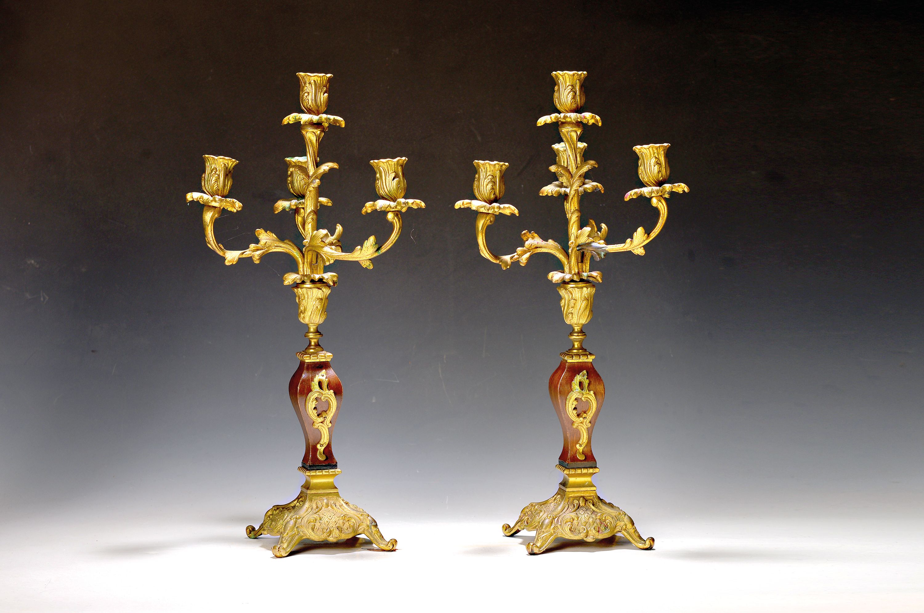 Paar Kerzenleuchter, Frankreich um 1880, Mahagonikorpus mit vergoldeten Messingmonturen,