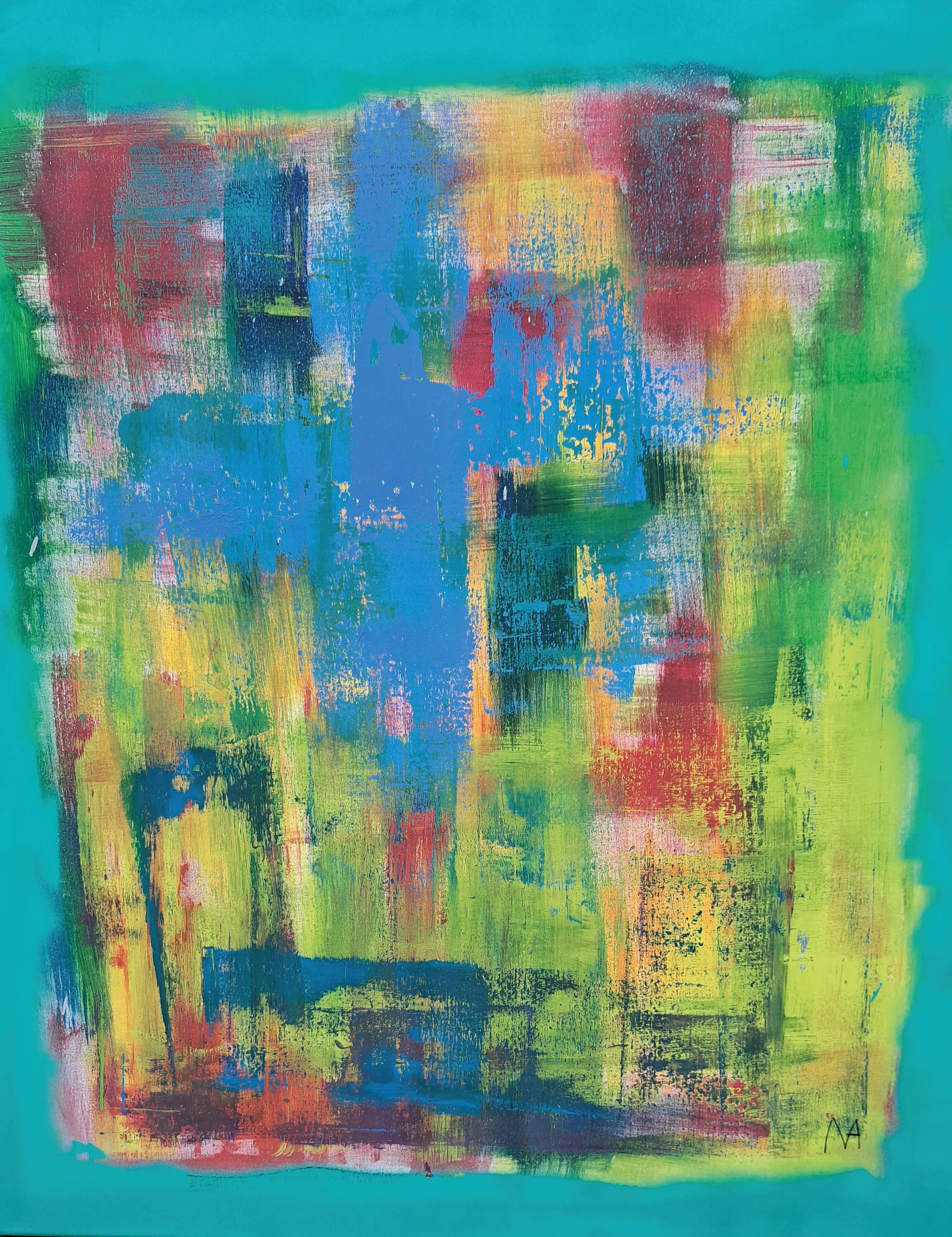 Mikail Akar, geb. 2013, Welle, 12 Farben Pigmentdruck, Leinen auf Keilrahmen, handübermalt,