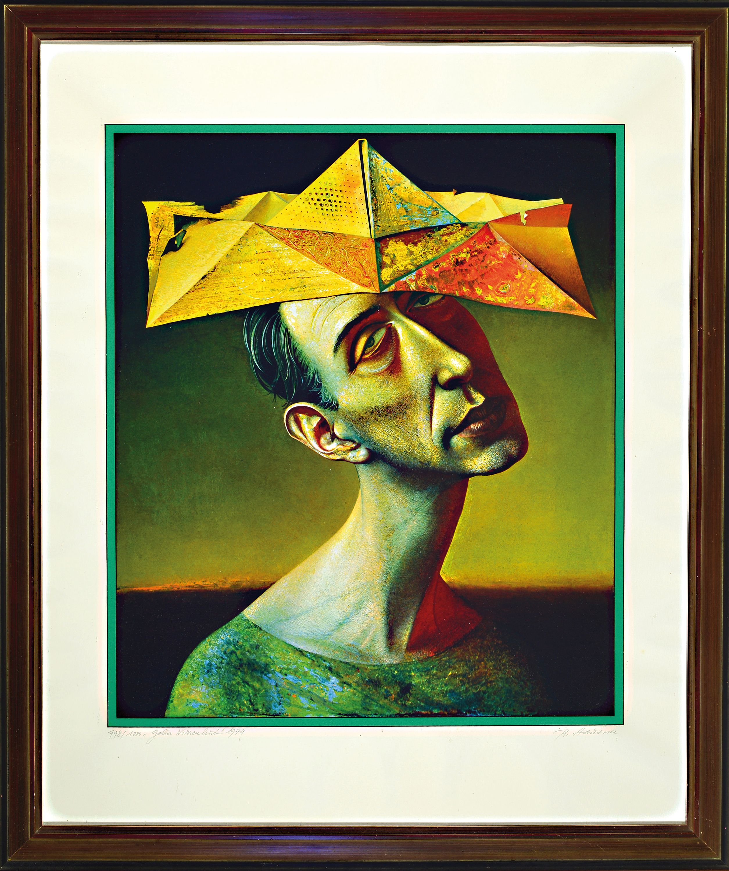Rudolf Hausner, 1914 Wien-1995 Mödling, Farbserigraphie, "Gelber Narrenhut", 1974,