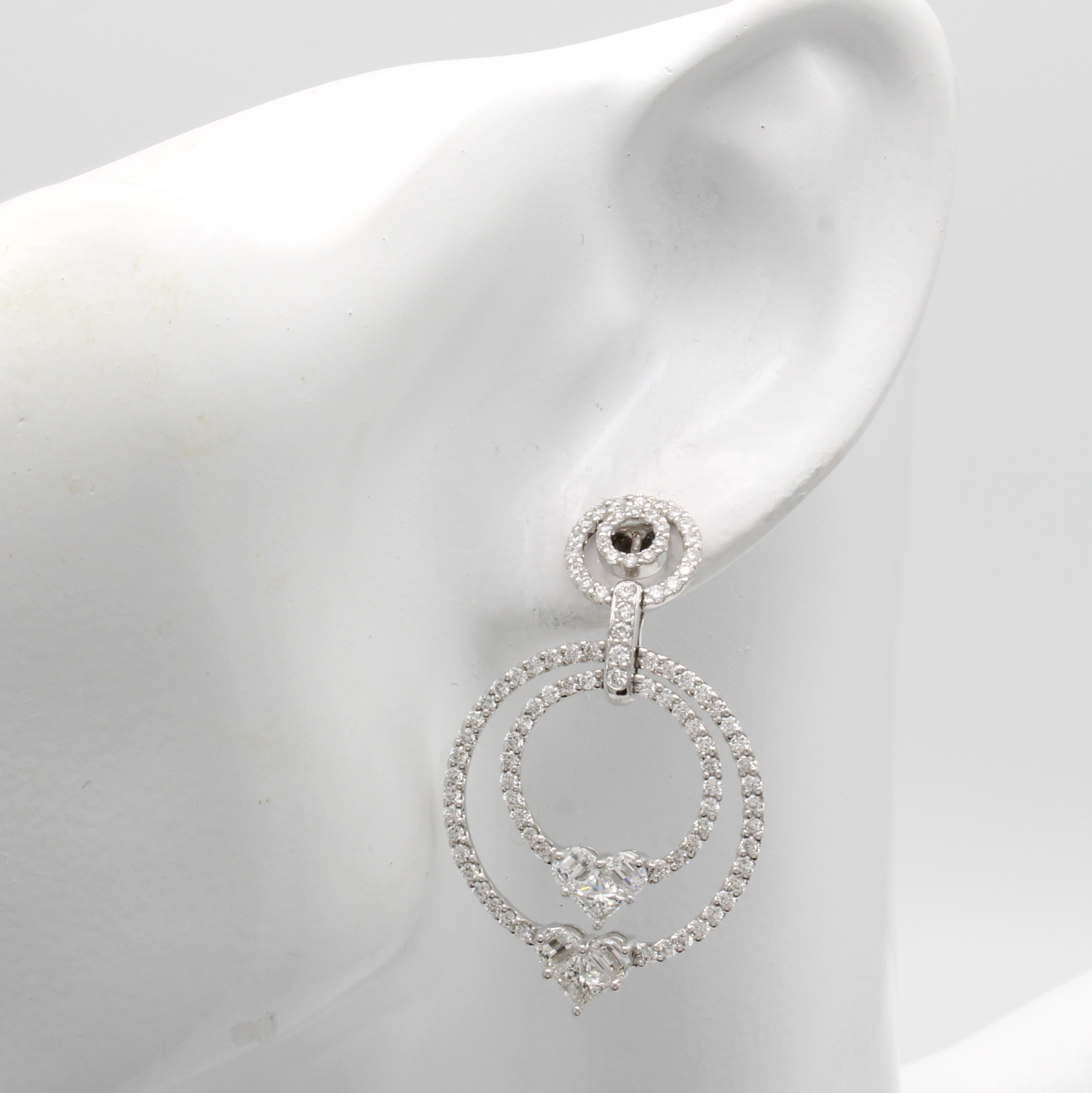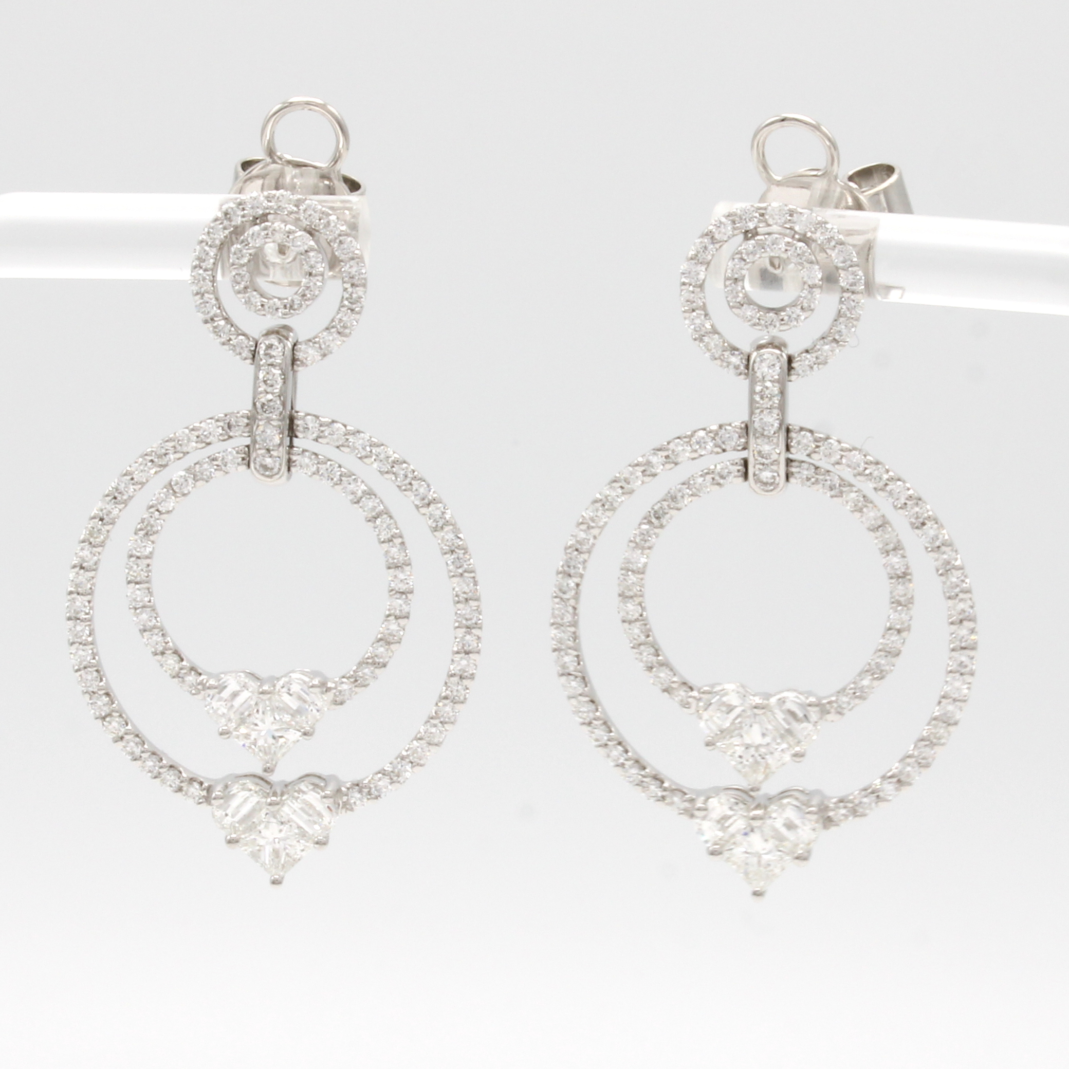 Paar Ohrstecker mit Diamanten und Brillanten "invisible setting", WG 750/000, Diam. u. Brill. zus. ca. 4.11 ct feines Weiß/vs, kreisf. Abhängungen Schätzpreis: 12000, - EUR