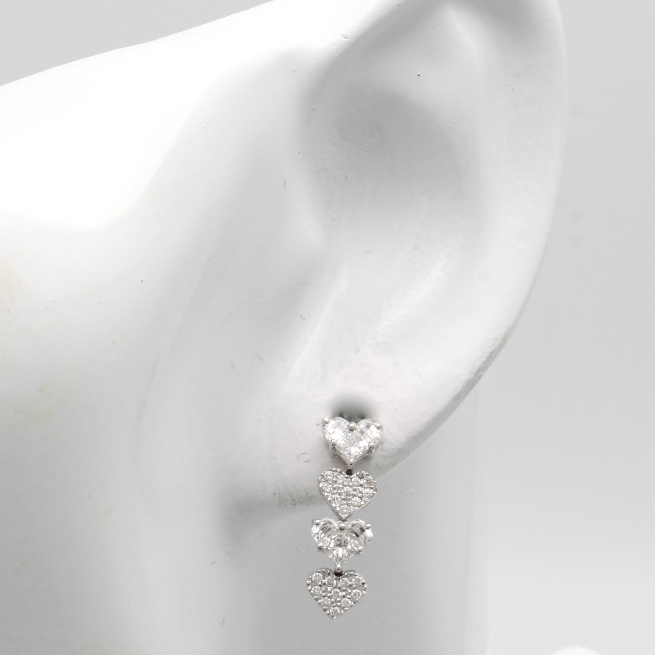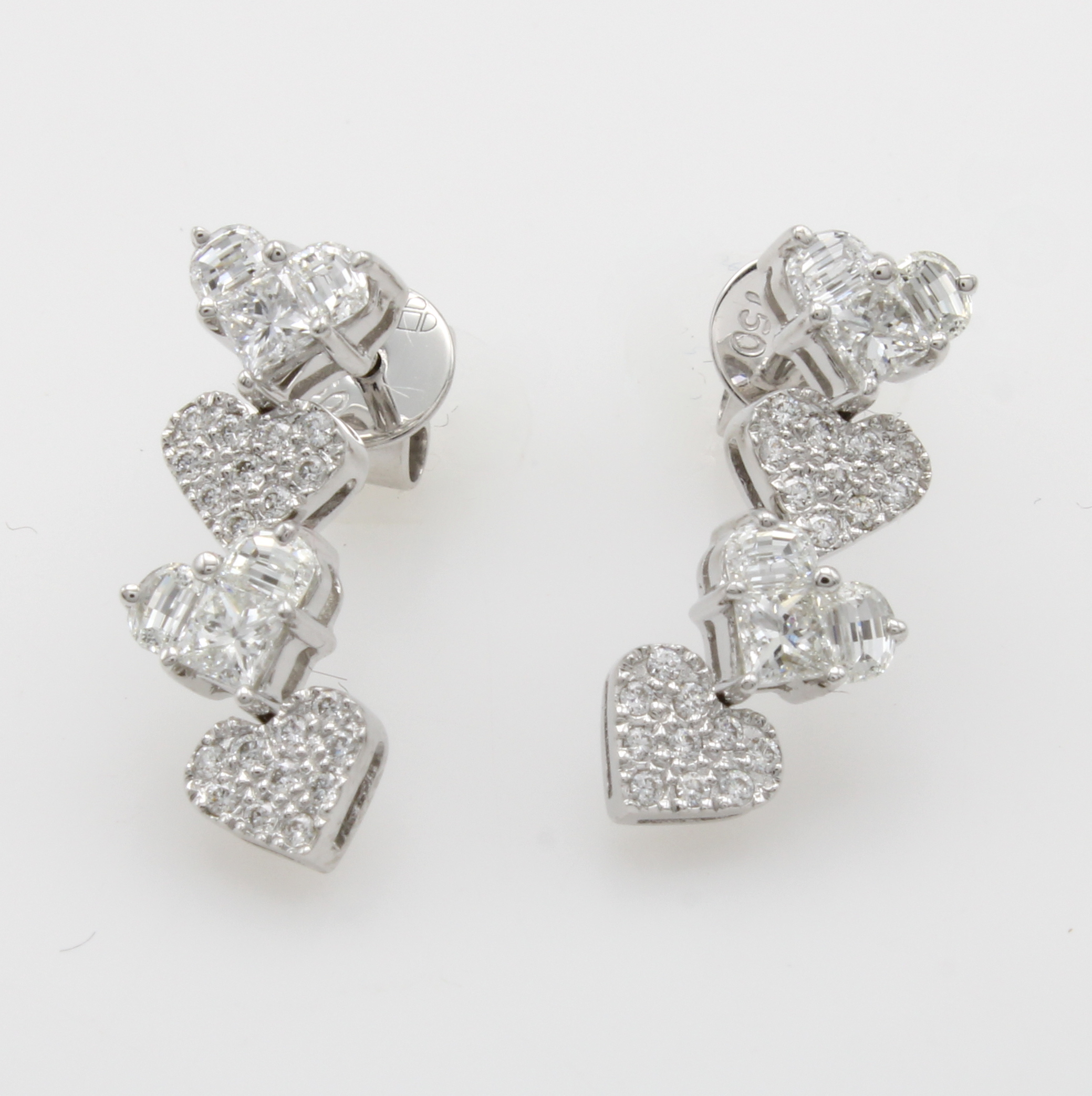 Paar Ohrstecker mit Diamanten und Brillanten "invisible setting", WG 750/000, Diam. u. Brill. zus. ca. 0.99 ct feines Weiß/vs in 8 Herzformen gef. Schätzpreis: 3400, - EUR