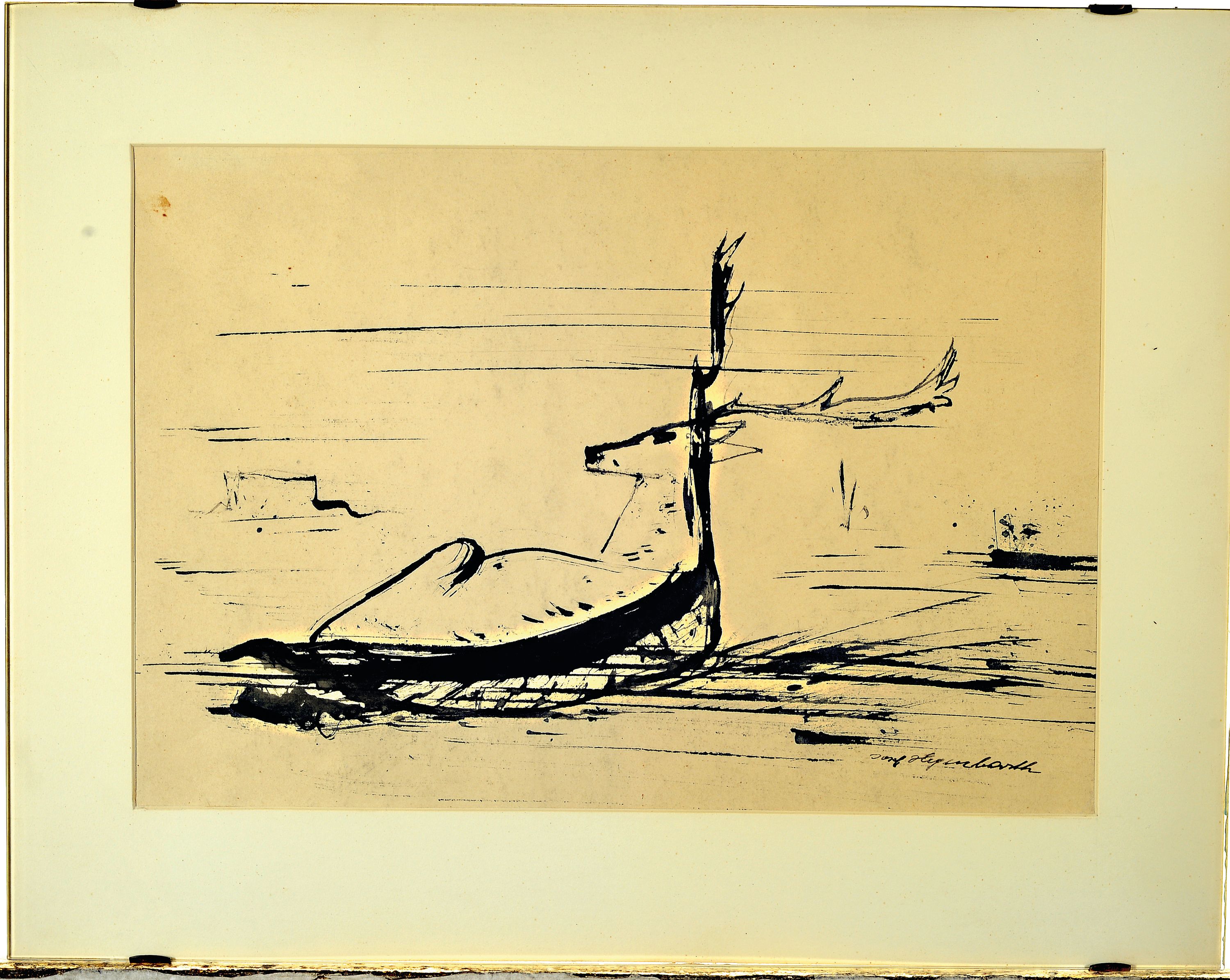 1956, Tusche auf Papier, l. gebräunt, rechts unten signiert, PP Ausschnitt 26x37