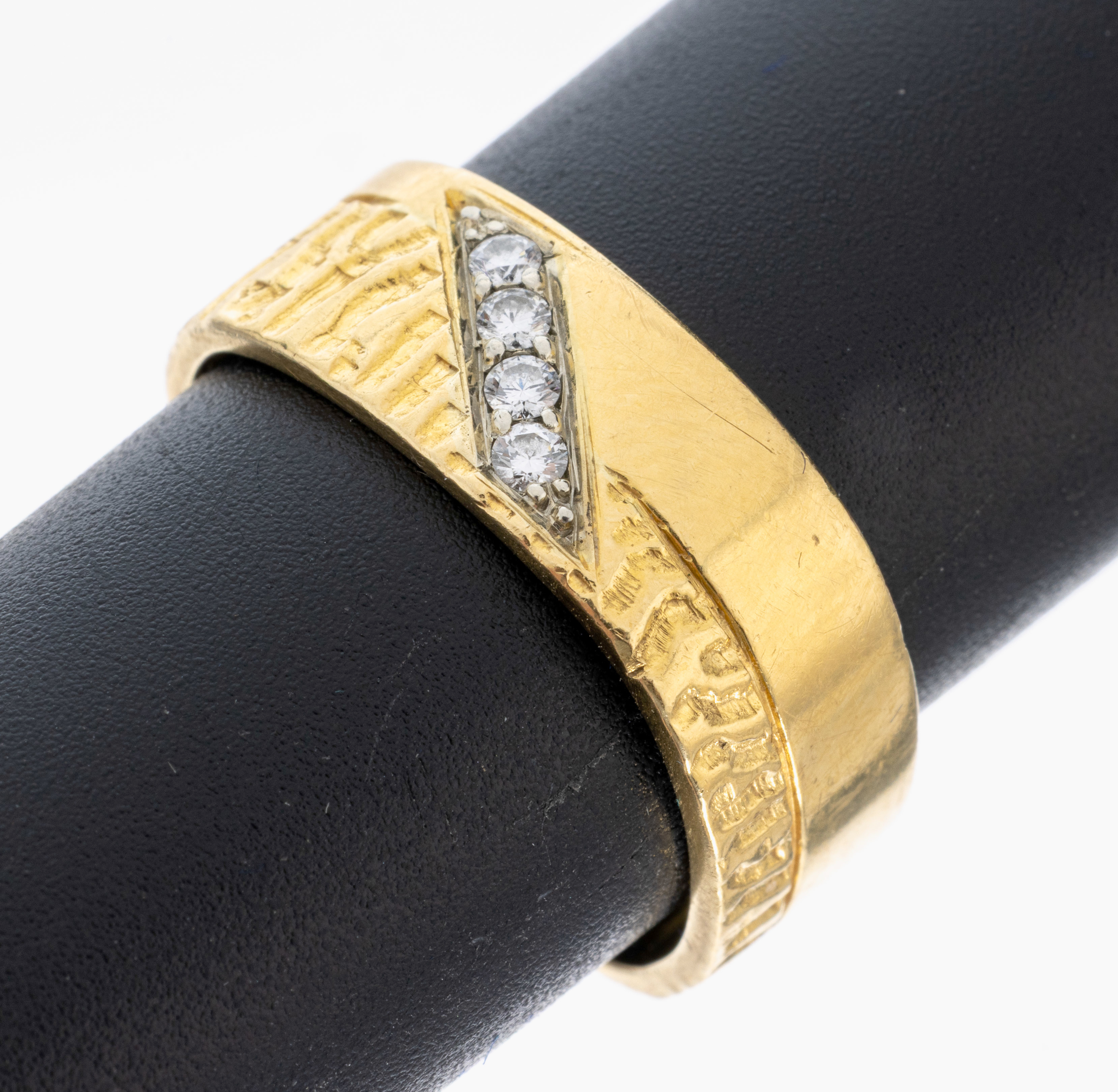18 kt Gold Brillant-Ring, GG/WG 750/000, grav. und pol., mittig 4 in WG gefasste