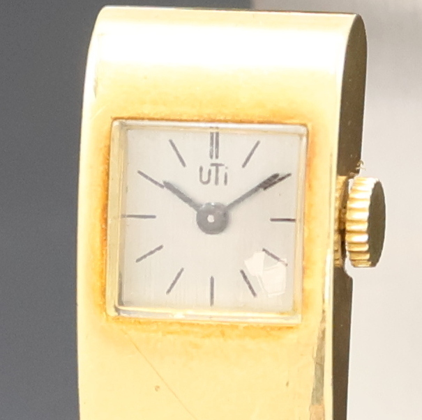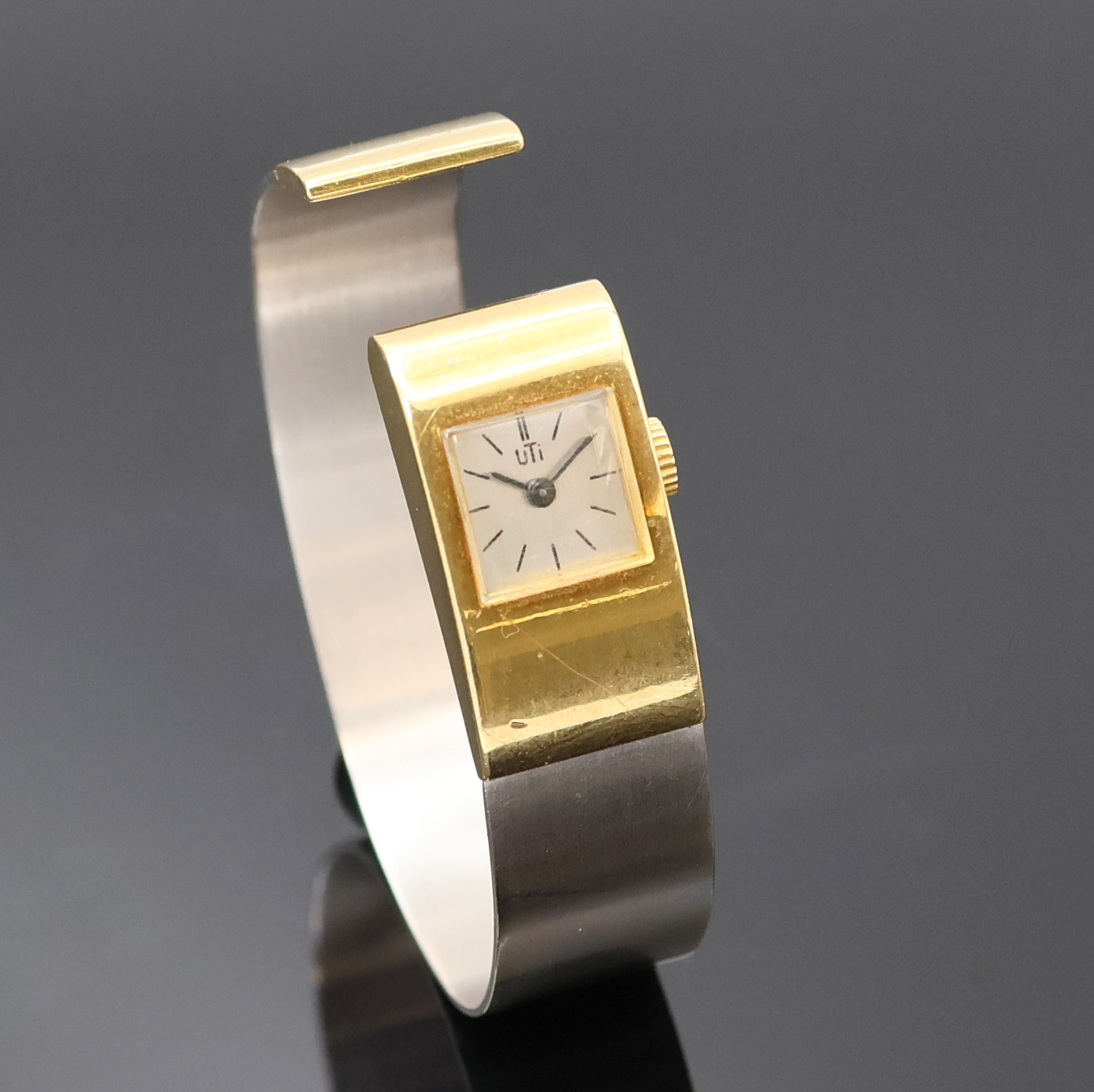 UTI außergewöhnliche Damenspangenuhr aus den 1970er Jahren in GG/WG 750/000, Frankreich