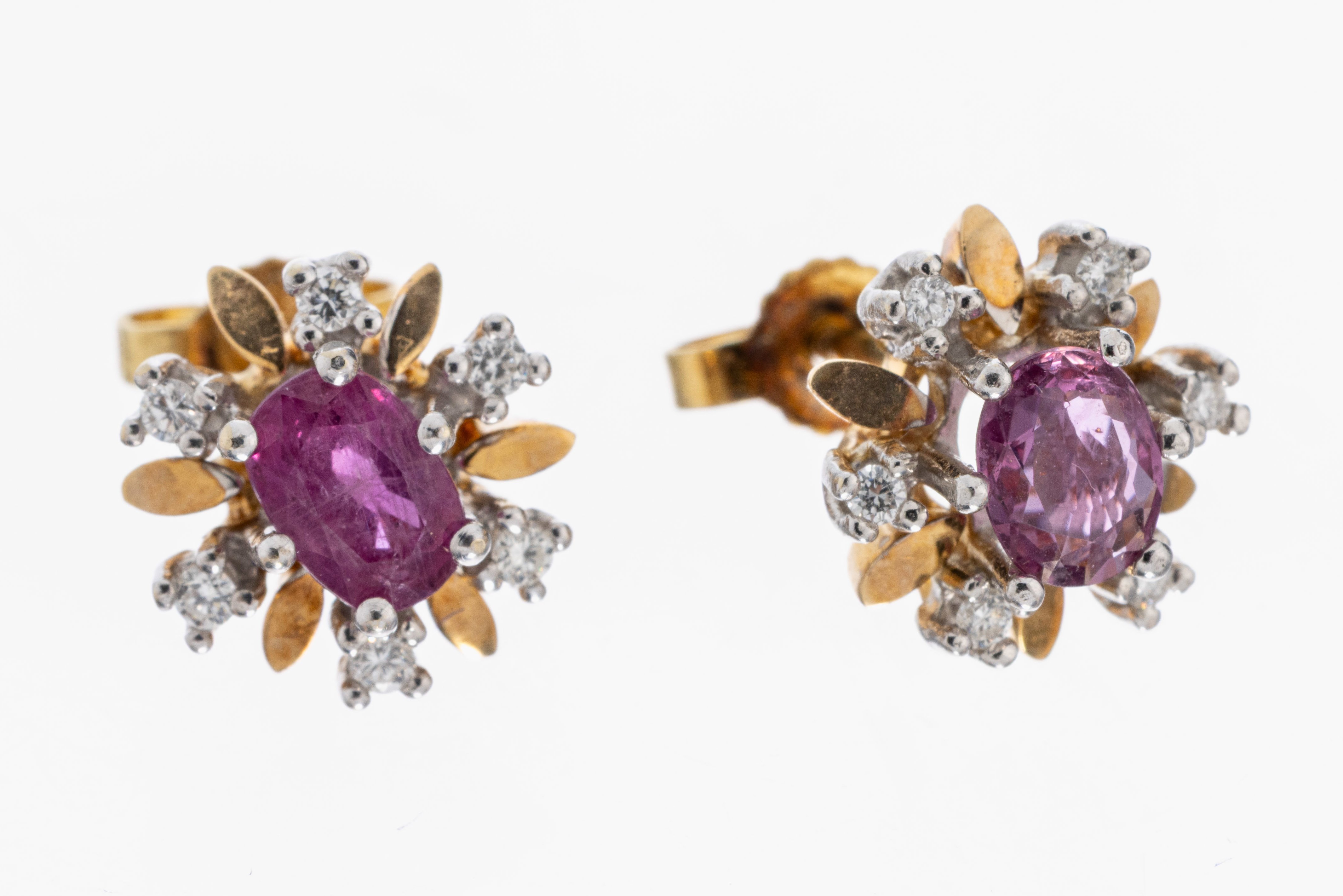 Paar 14 kt Gold Rubin-Brillant-Ohrstecker, GG/WG 585/000, mittig 2 ovalfacett. Rubine