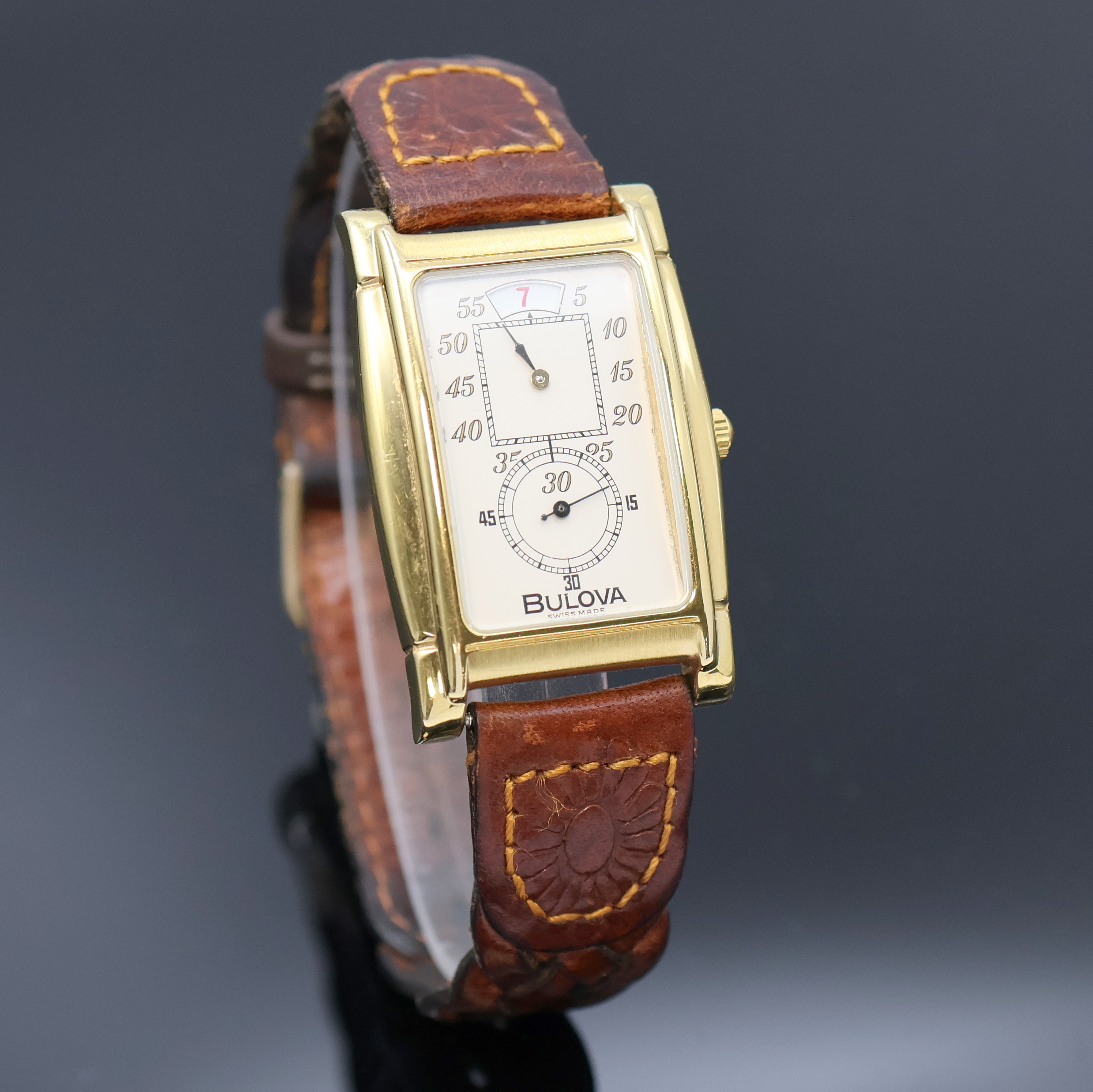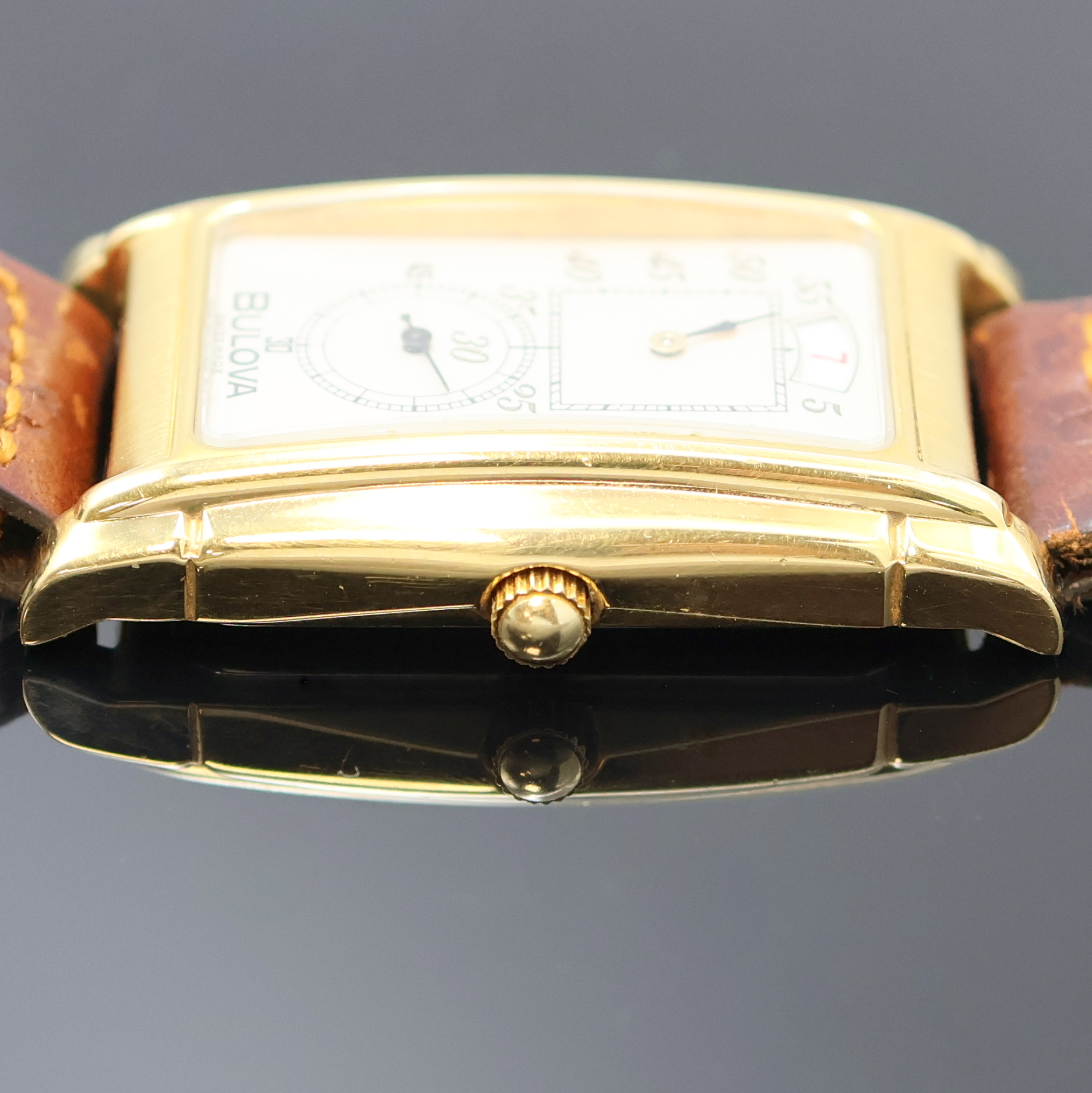 BULOVA vergoldete Armbanduhr mit springender Stunde Referenz 8.098.1.0.10, Schweiz