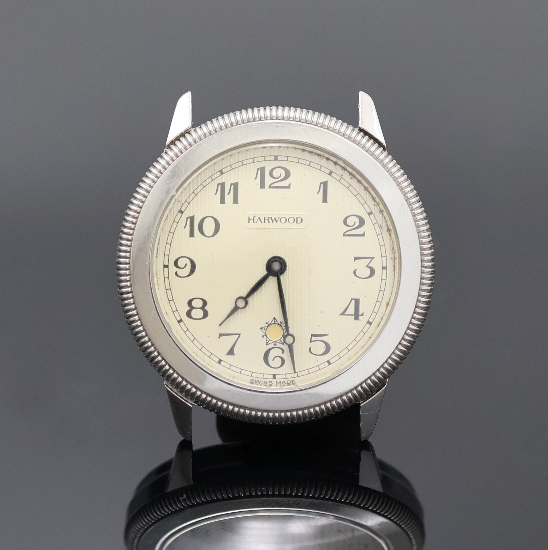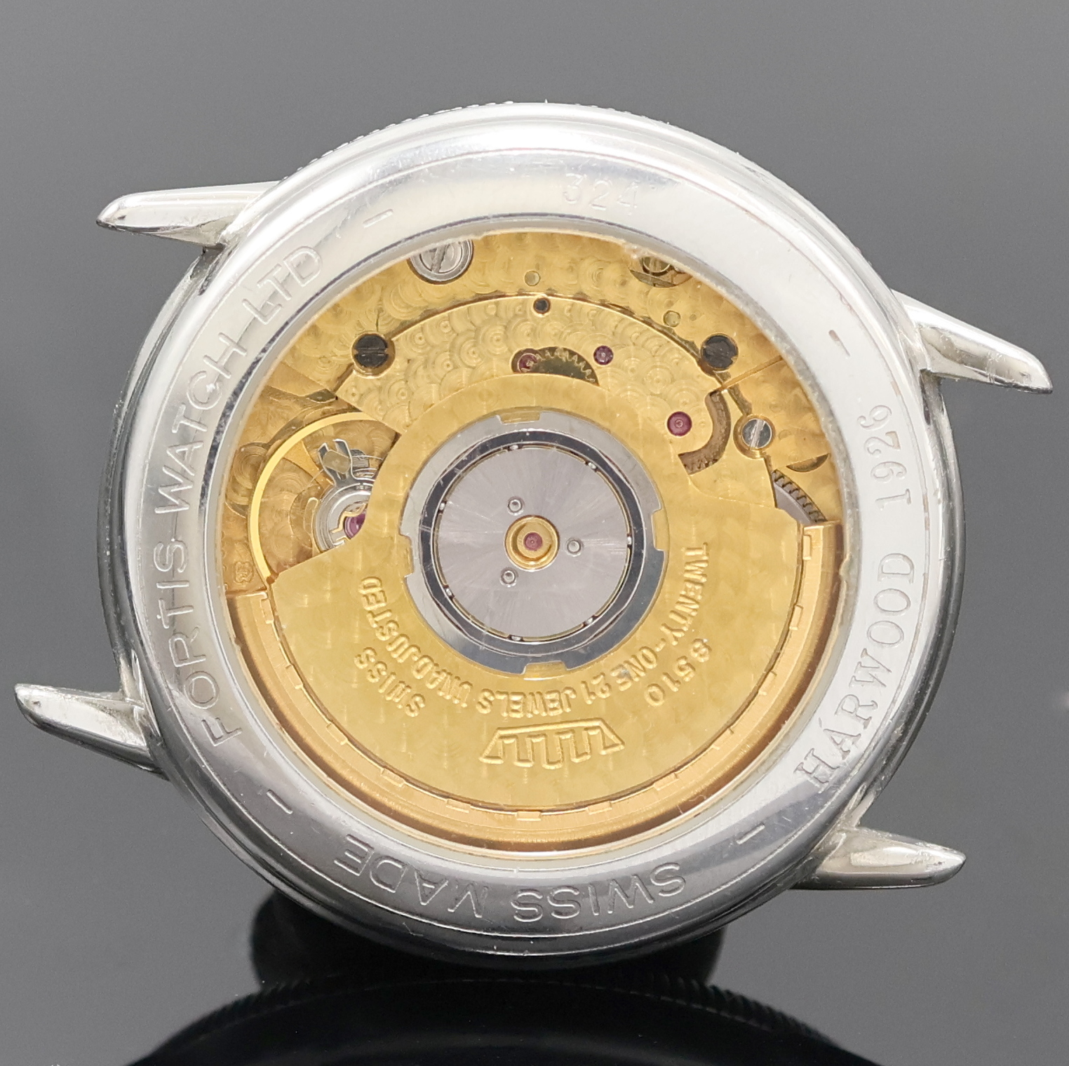 HARWOOD / FORTIS Armbanduhr in Stahl, Schweiz um 1990, beids. vergl. Geh., Boden