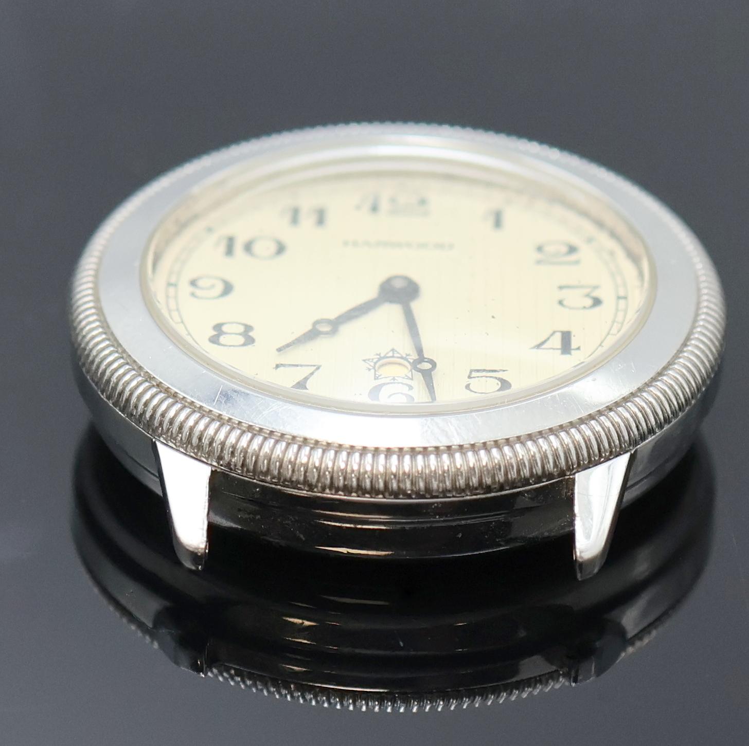 aufgedr., Zeigerstellung patent. v. Harwood 1926 durch drehen der gerändelten Lünette
