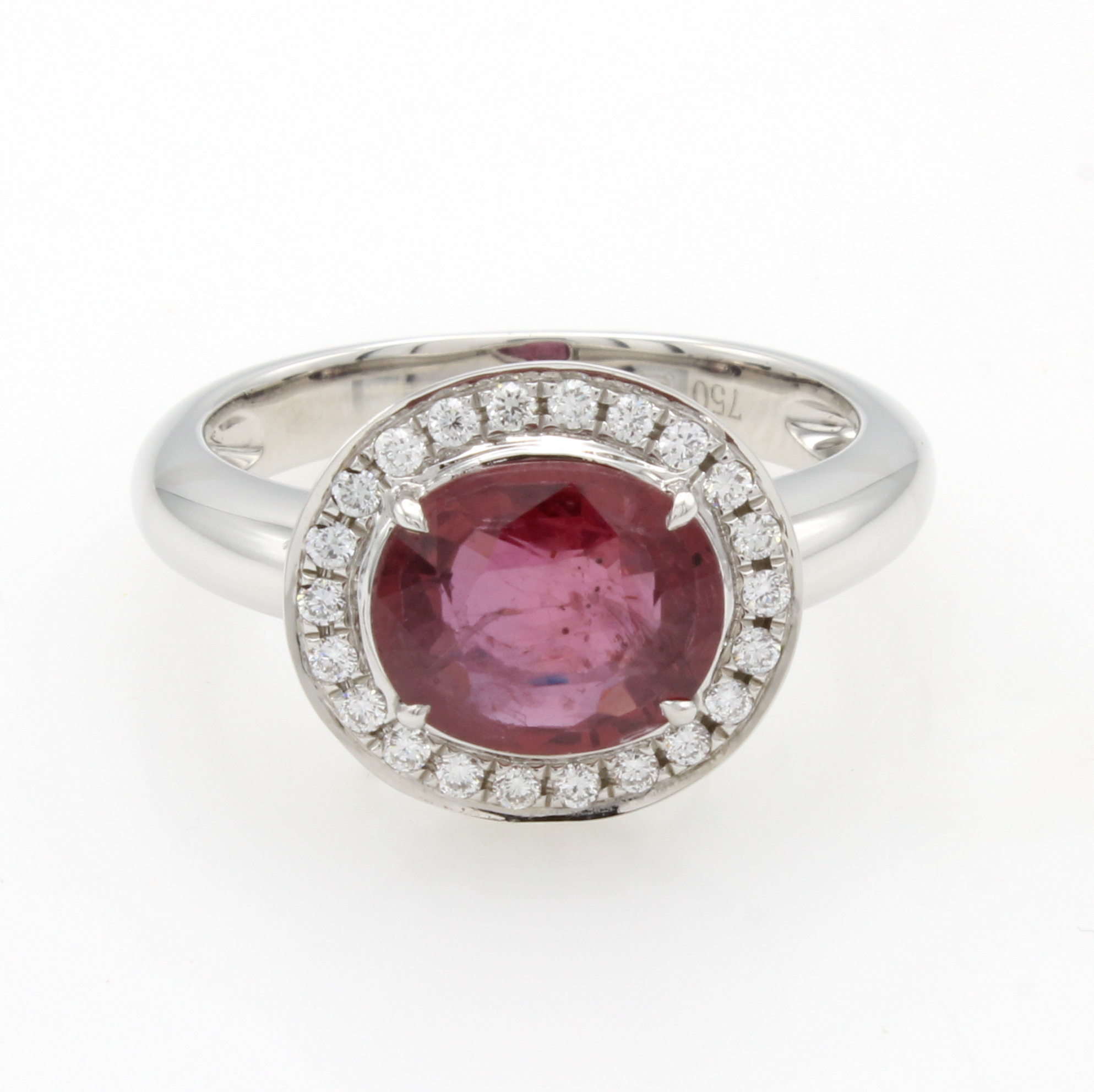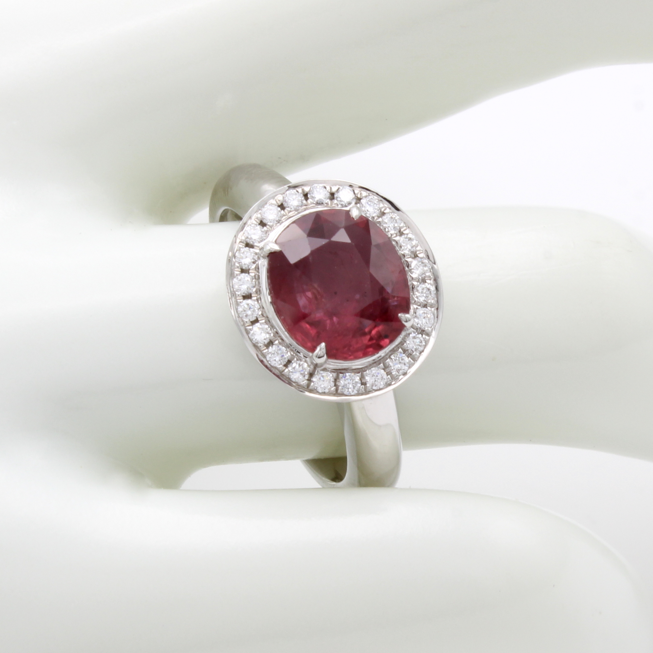 Ring mit Rubin und Brillanten, WG 750/000, ovaler Rubin (erhitzt) ca. 2.61 ct, Brill. zus. ca. 0.19 ct feines Weiß/si, RW ca. 55 Schätzpreis: 8800, - EUR