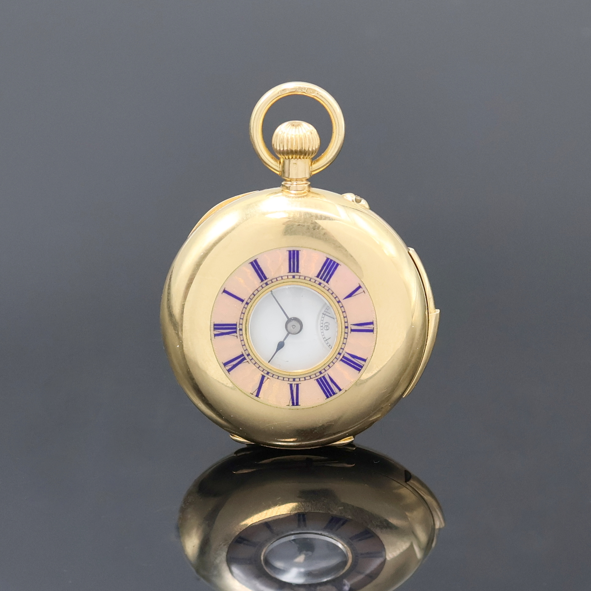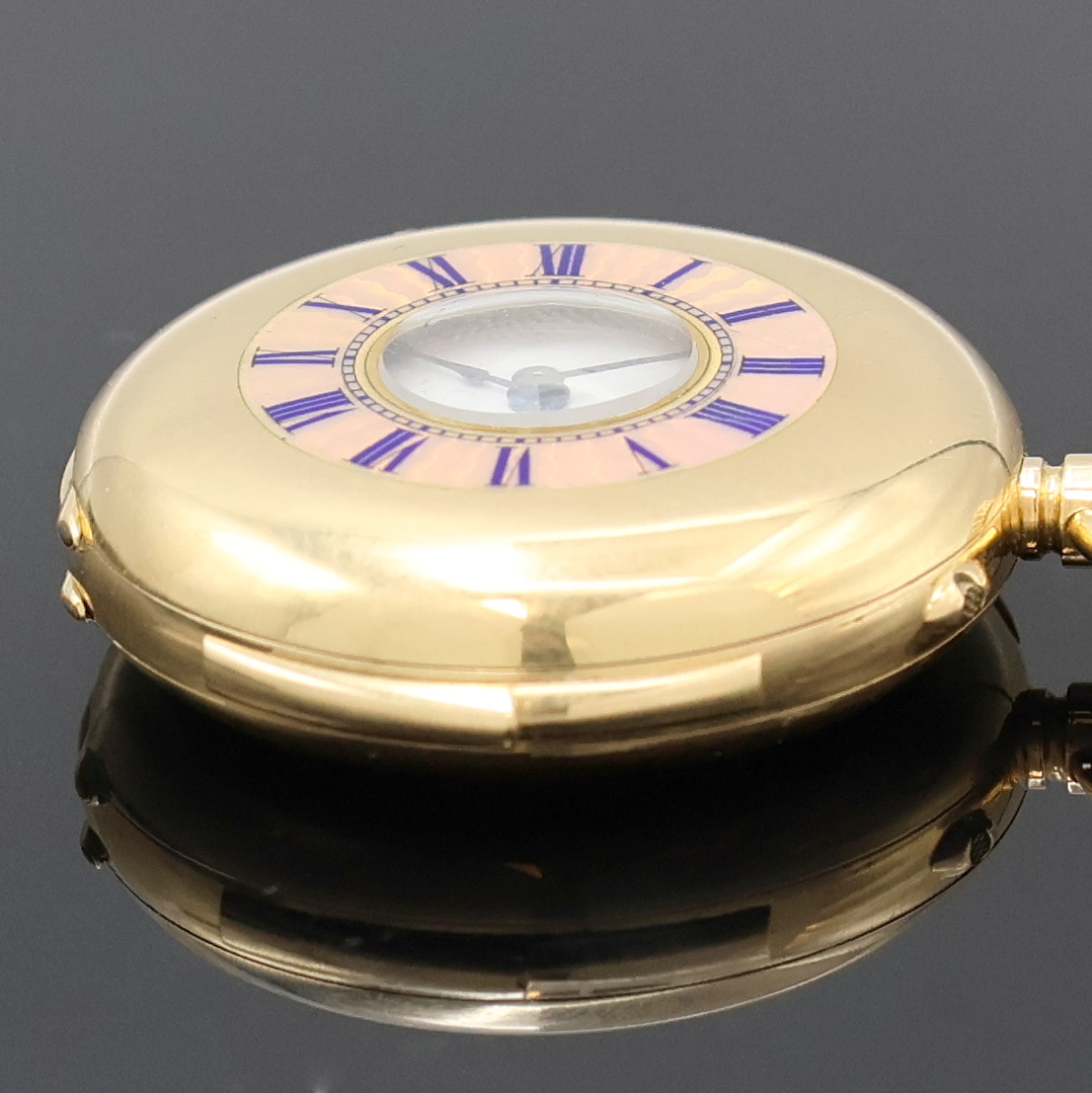 l. dell., Goldcuvette, Sprungdeckel m. röm. Zahlen, Emailzifferbl. m. röm. Zahlen,